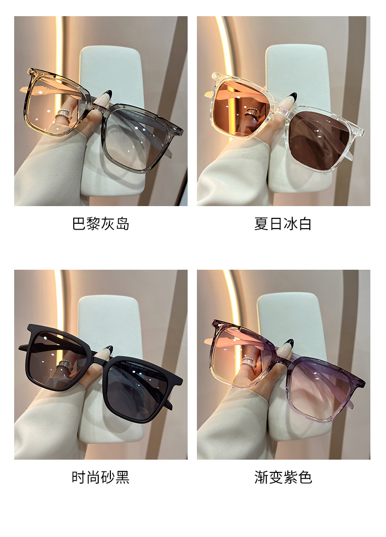 새로운 TR 패션 대형 프레임 선글라스 인터넷 연예인 같은 스타일 안티 UV 일반 얼굴 슬리밍 남성과 여성의 거리 사진 선글라스스토어 가기