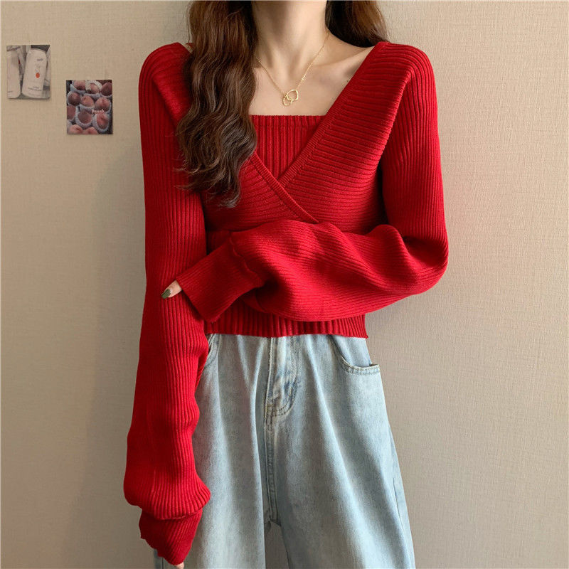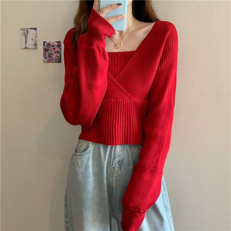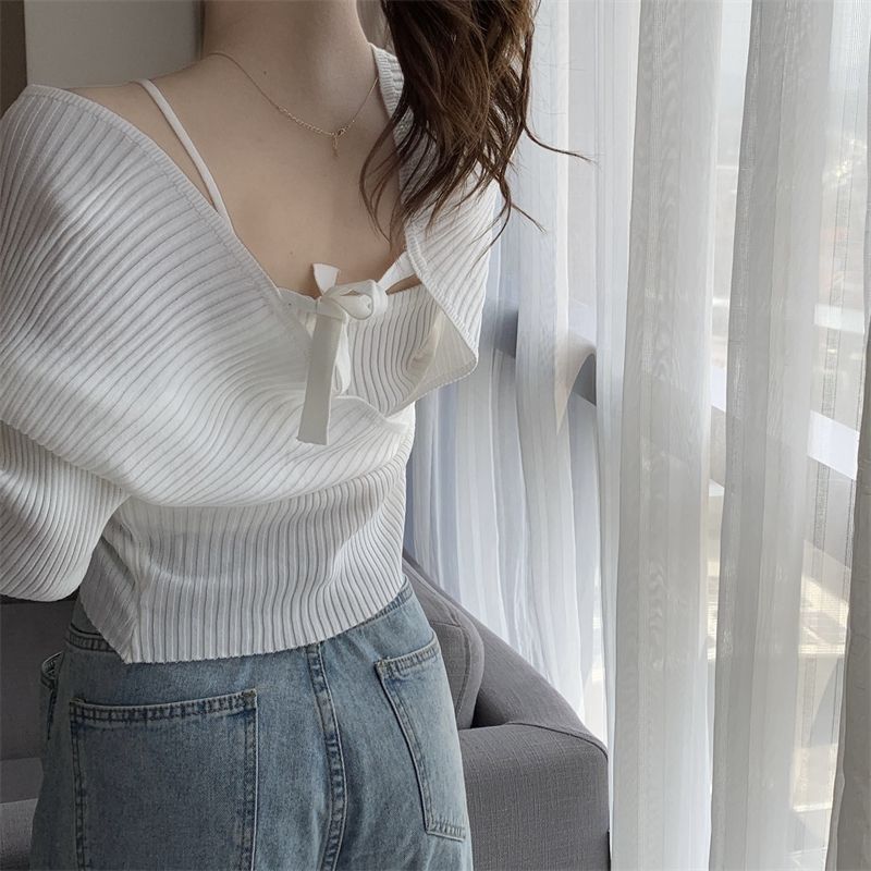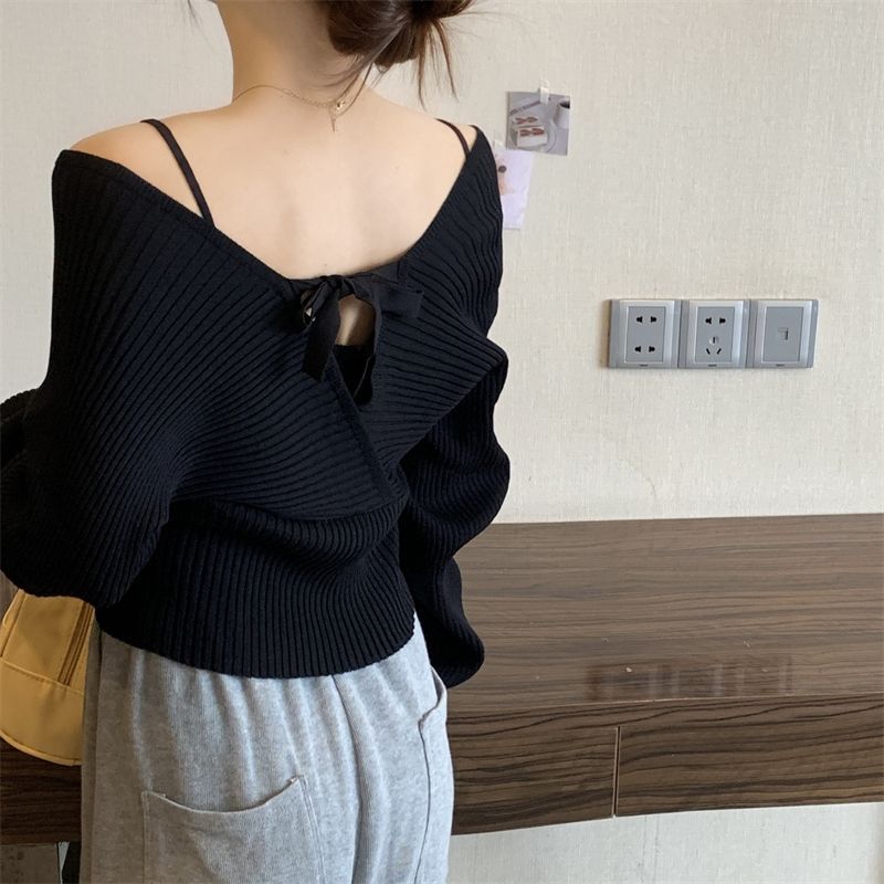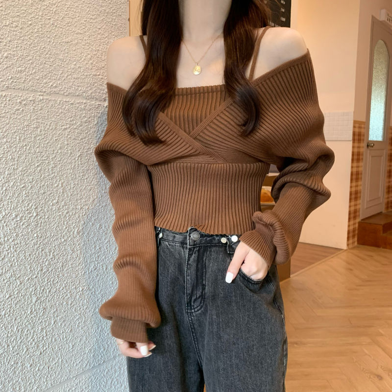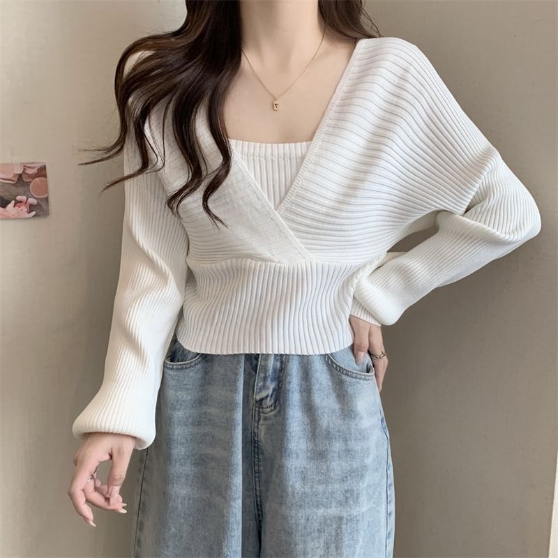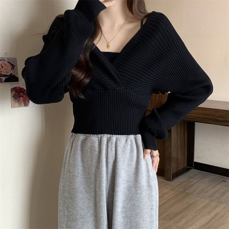 2025년 가을 여성을 위한 가짜 투피스 시크 스웨터 새로운 디자인 이너 레이어드 셔츠 하이엔드 탑 스웨터스토어 가기