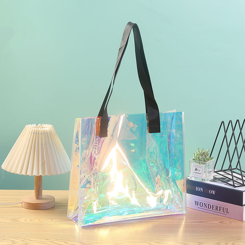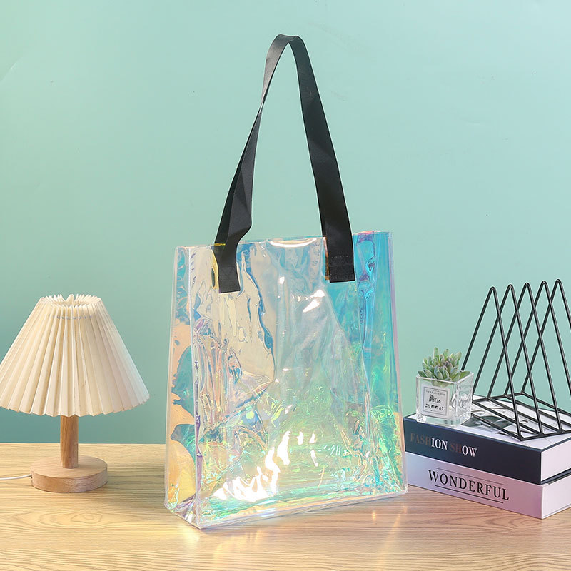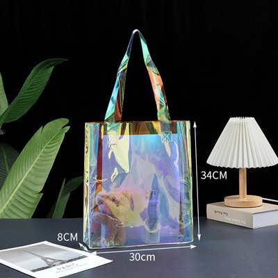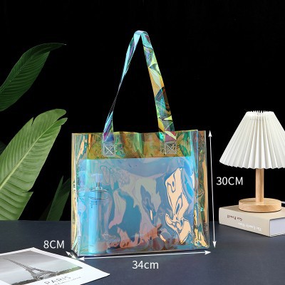 다채로운 레이저 토트 백 패턴 pvc 투명 레이저 젤리 백 패션 어깨 유행 쇼핑백 로고