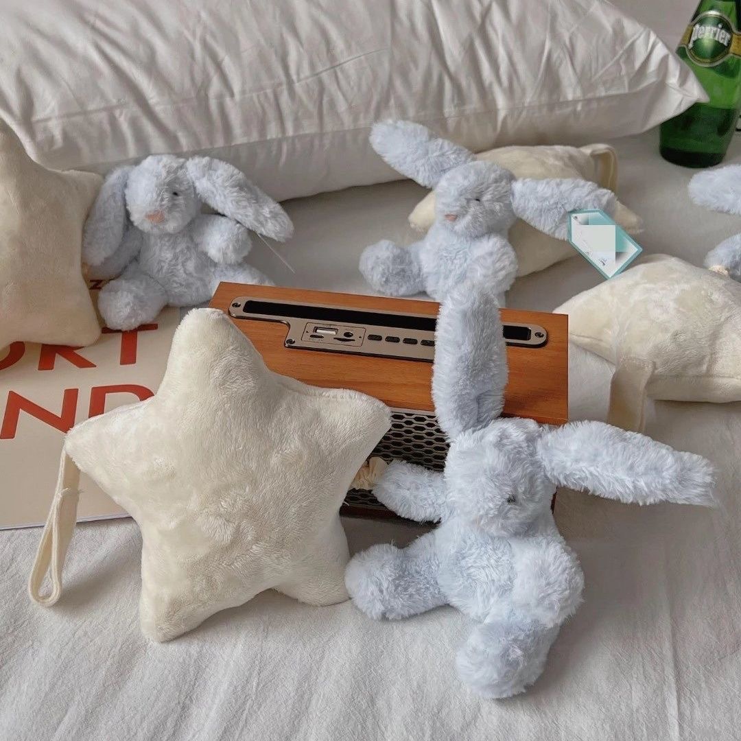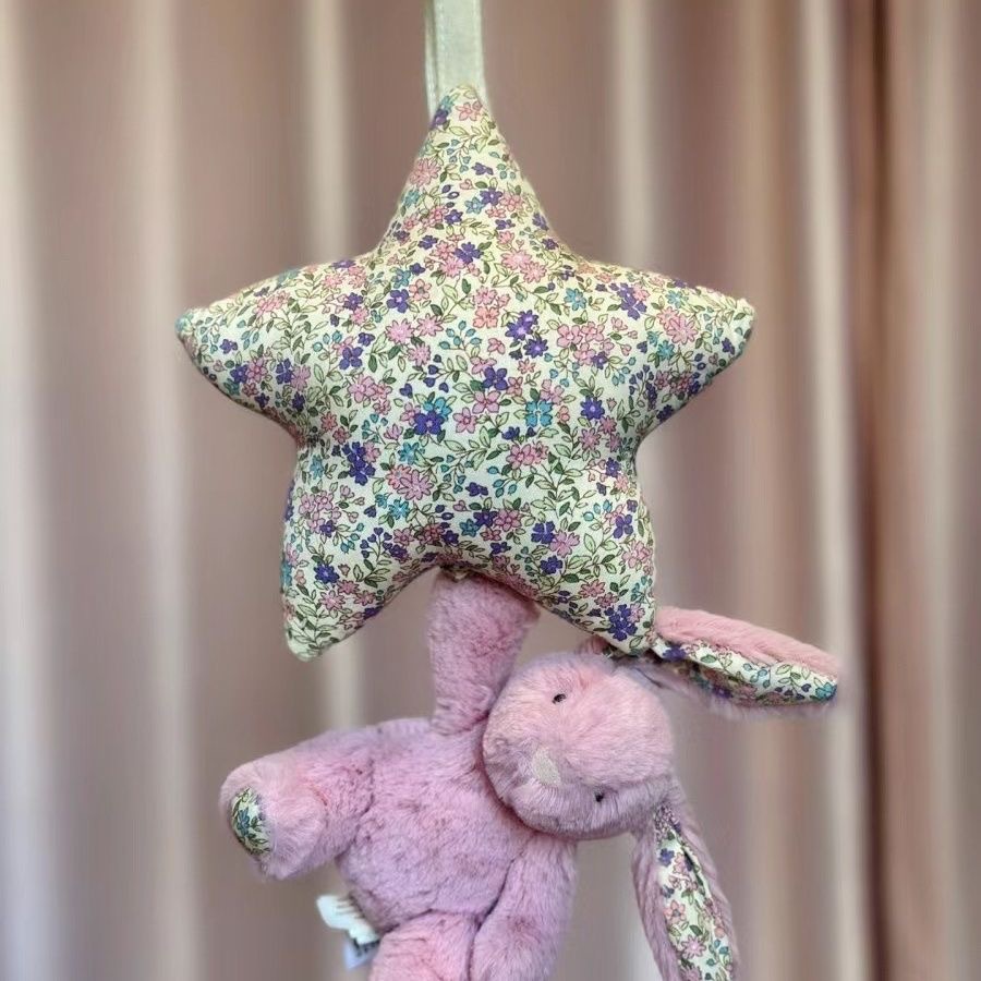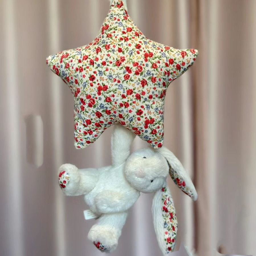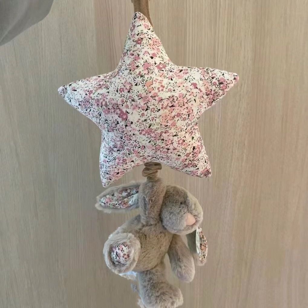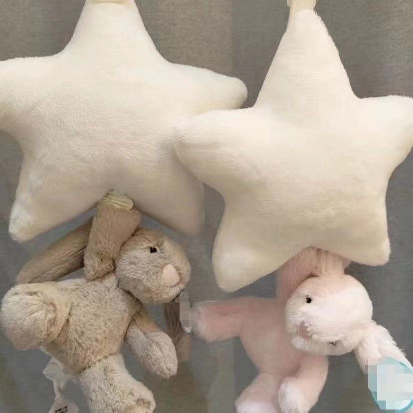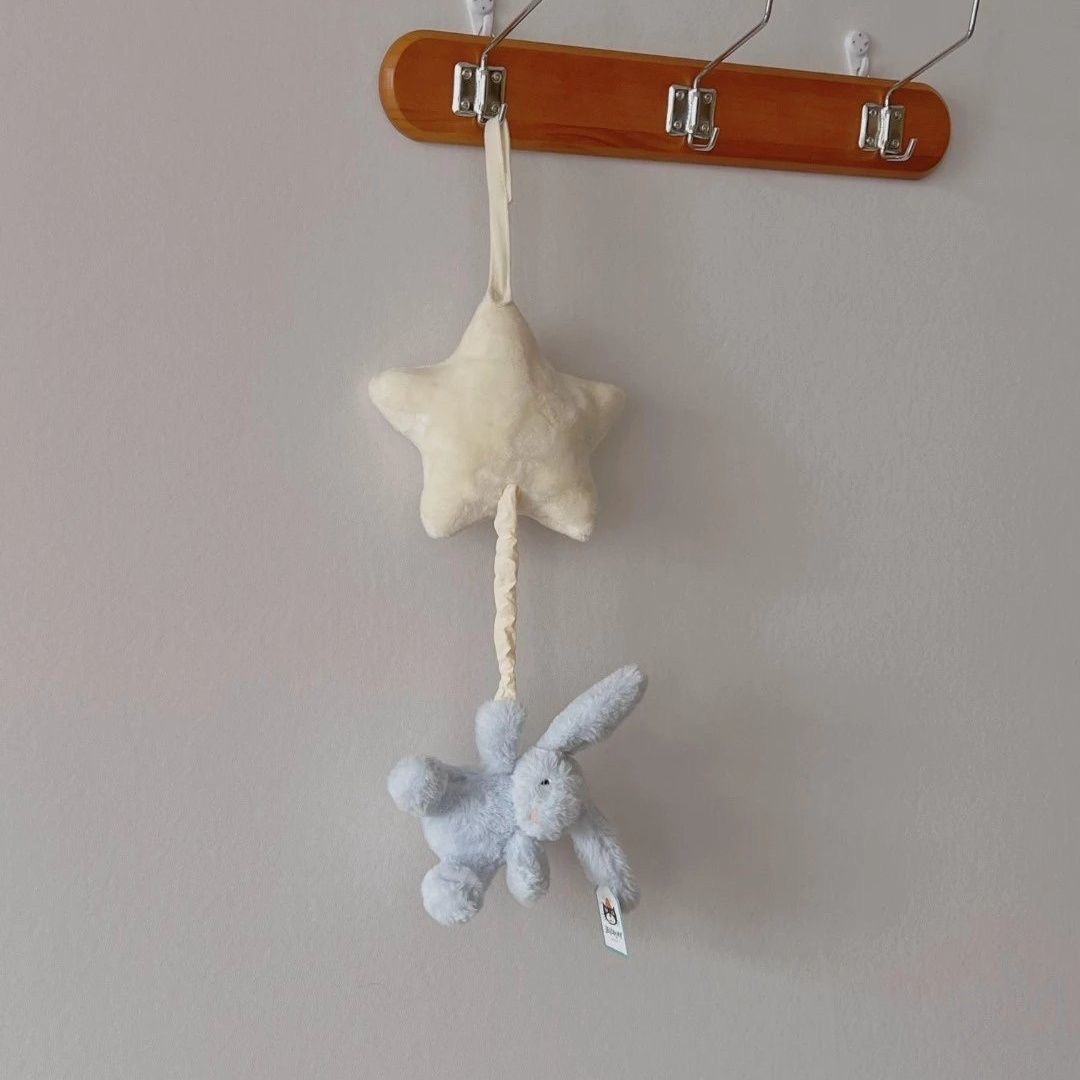수줍은 파란 별 토끼 뮤직벨 오르골 아기 침대 장식 어린이 진정용 봉제 인형