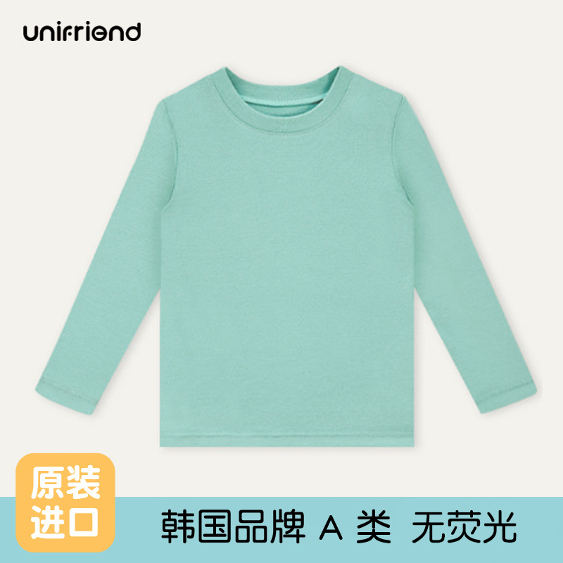 UNIFRIEND23 가을 겨울 아동복 한국식 아동 단색 탑 남아 면 티셔츠 대형 아동 베이스 셔츠스토어 가기