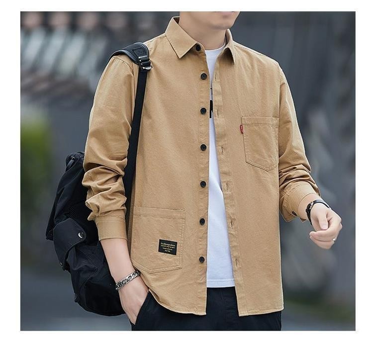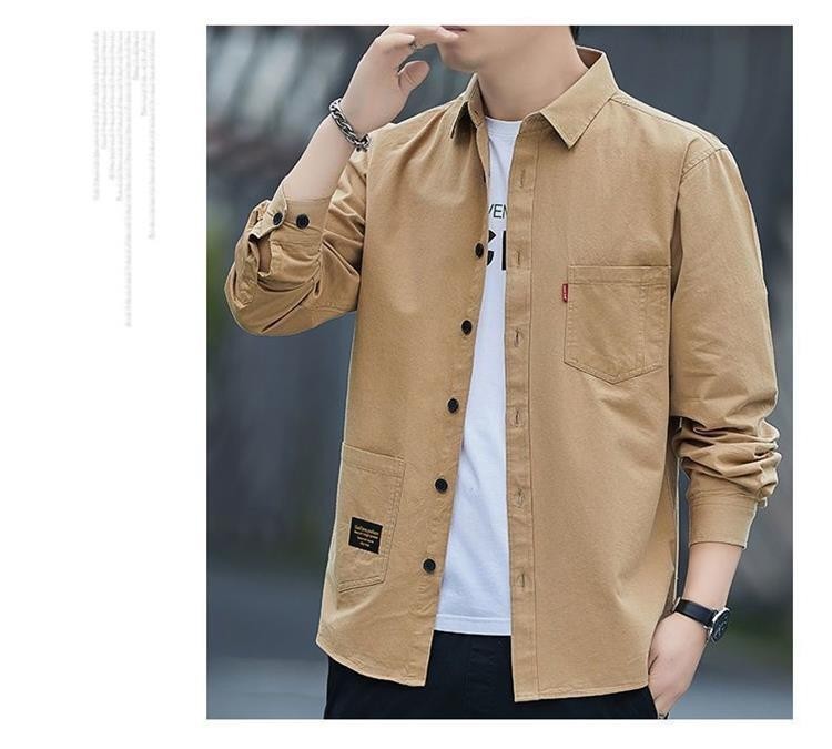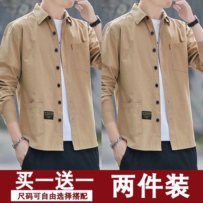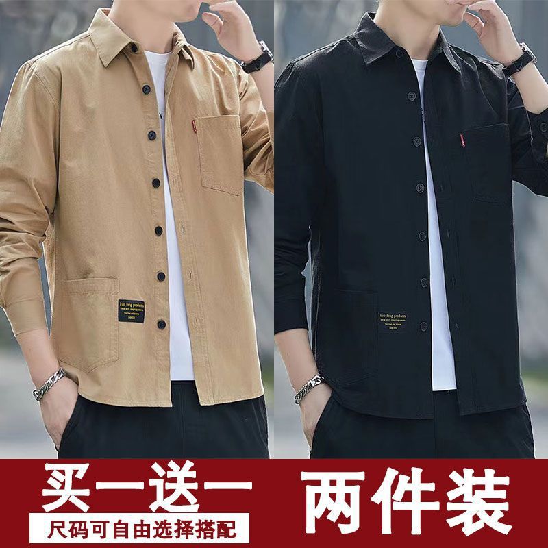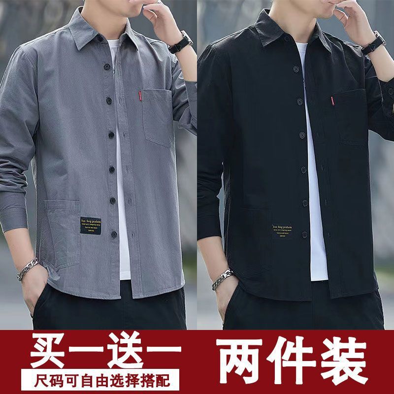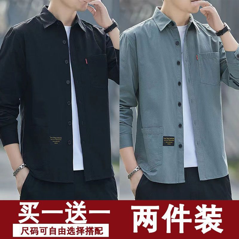비 다림질 루즈한 탑 그레이드 셔츠 남성용 긴팔 캐주얼 툴링 셔츠 봄과 가을 새로운 스타일 탑 코트 남성 패션스토어 가기
