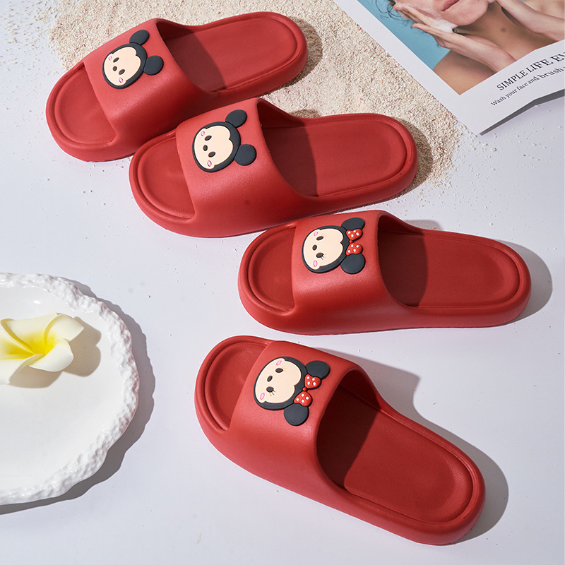 에바 만화 마우스 두꺼운 바닥 단계 배설물 느낌 빨간 슬리퍼 욕실 가정 생활 년 커플을위한 지참금 웨딩 슈즈스토어 가기