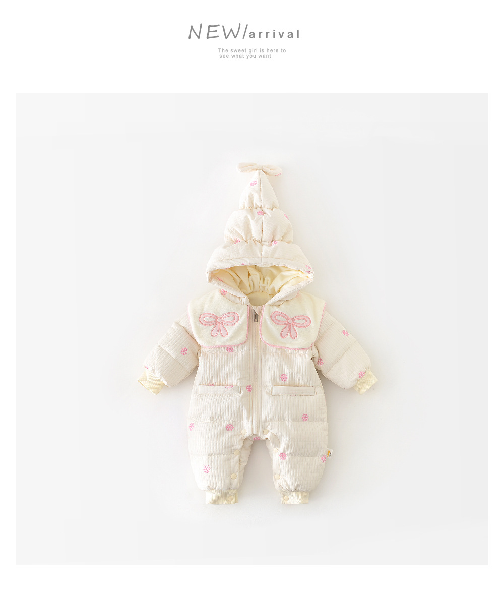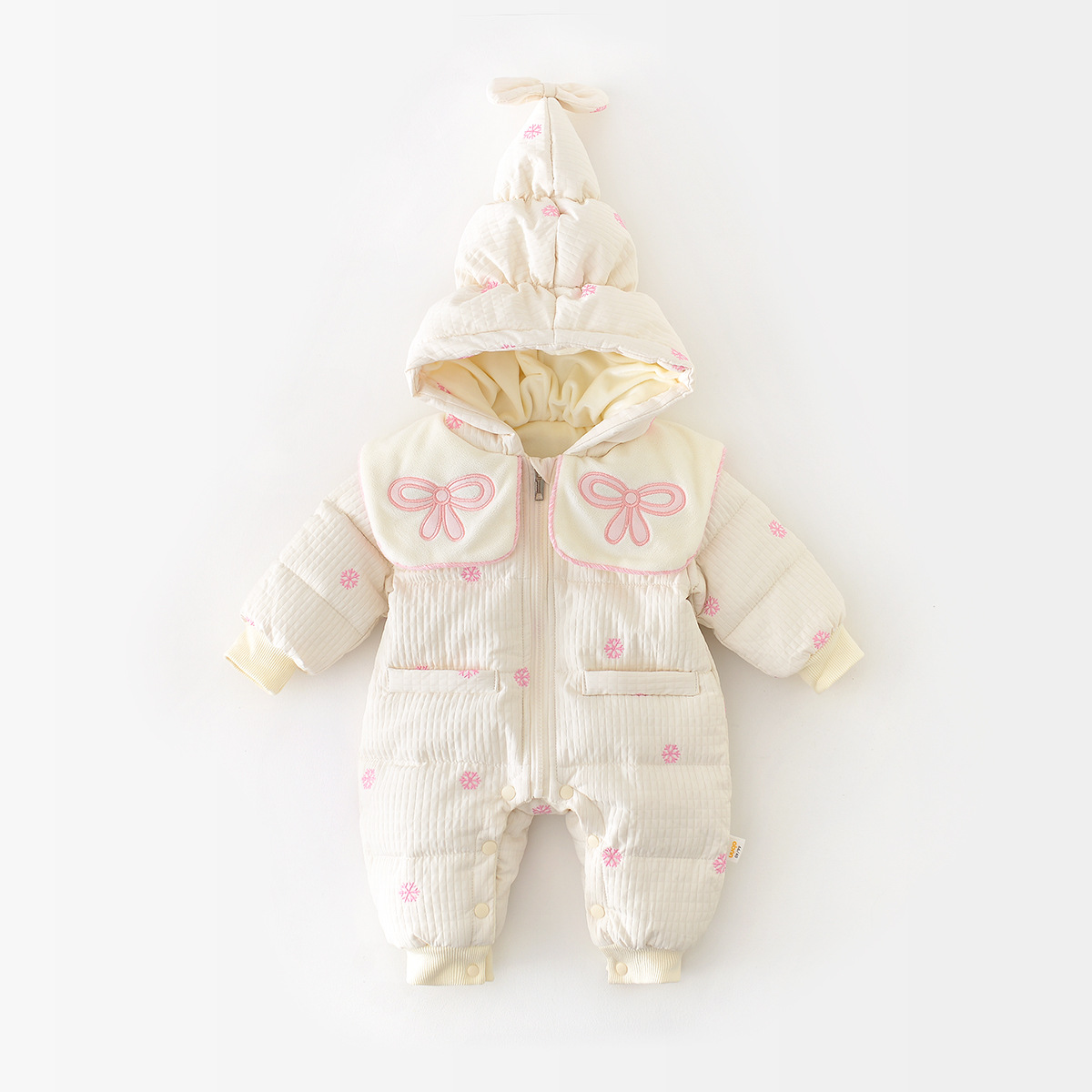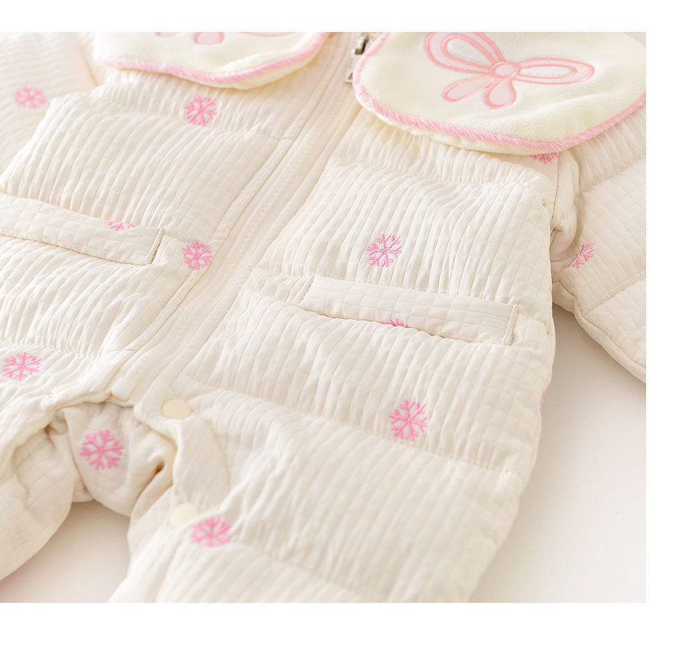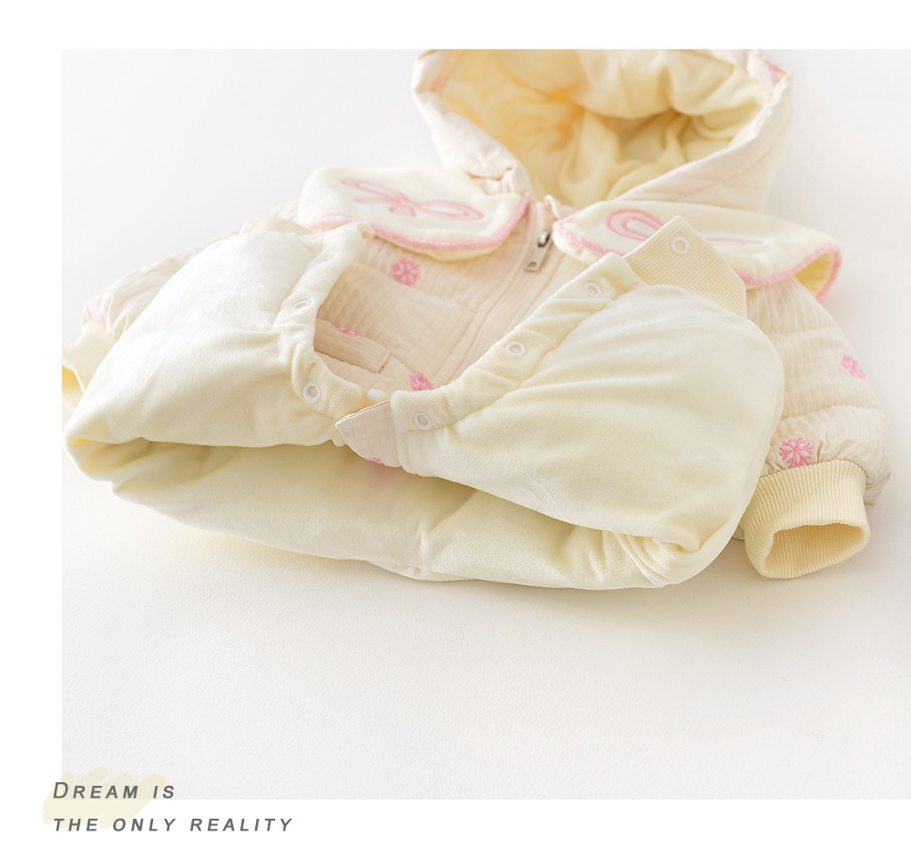 新生儿手塞棉长爬婴儿秋冬季连体衣爬服女宝甜美加绒外出保暖棉袄