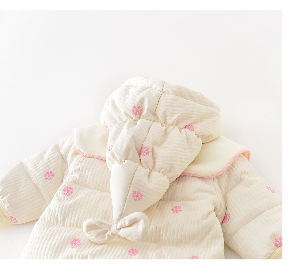 婴儿冬季连体衣女宝宝绗棉满印花朵甜美棉衣可爱尖尖帽爬服95115