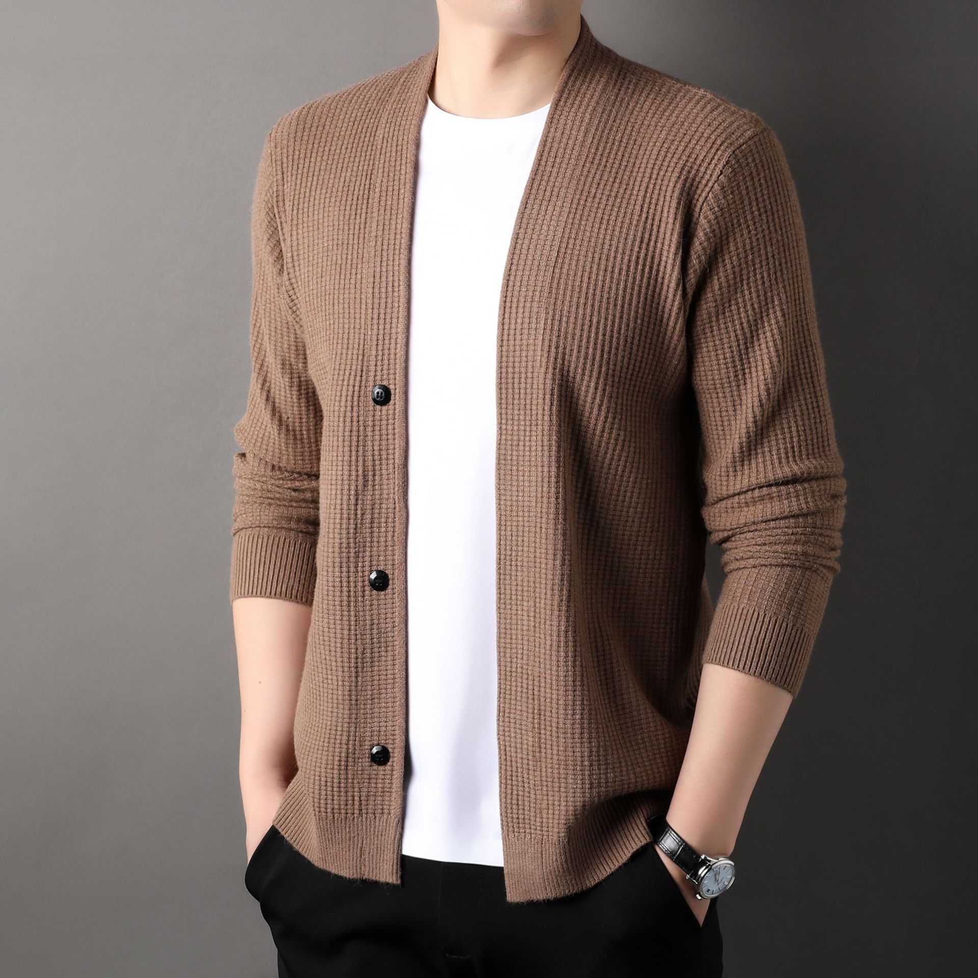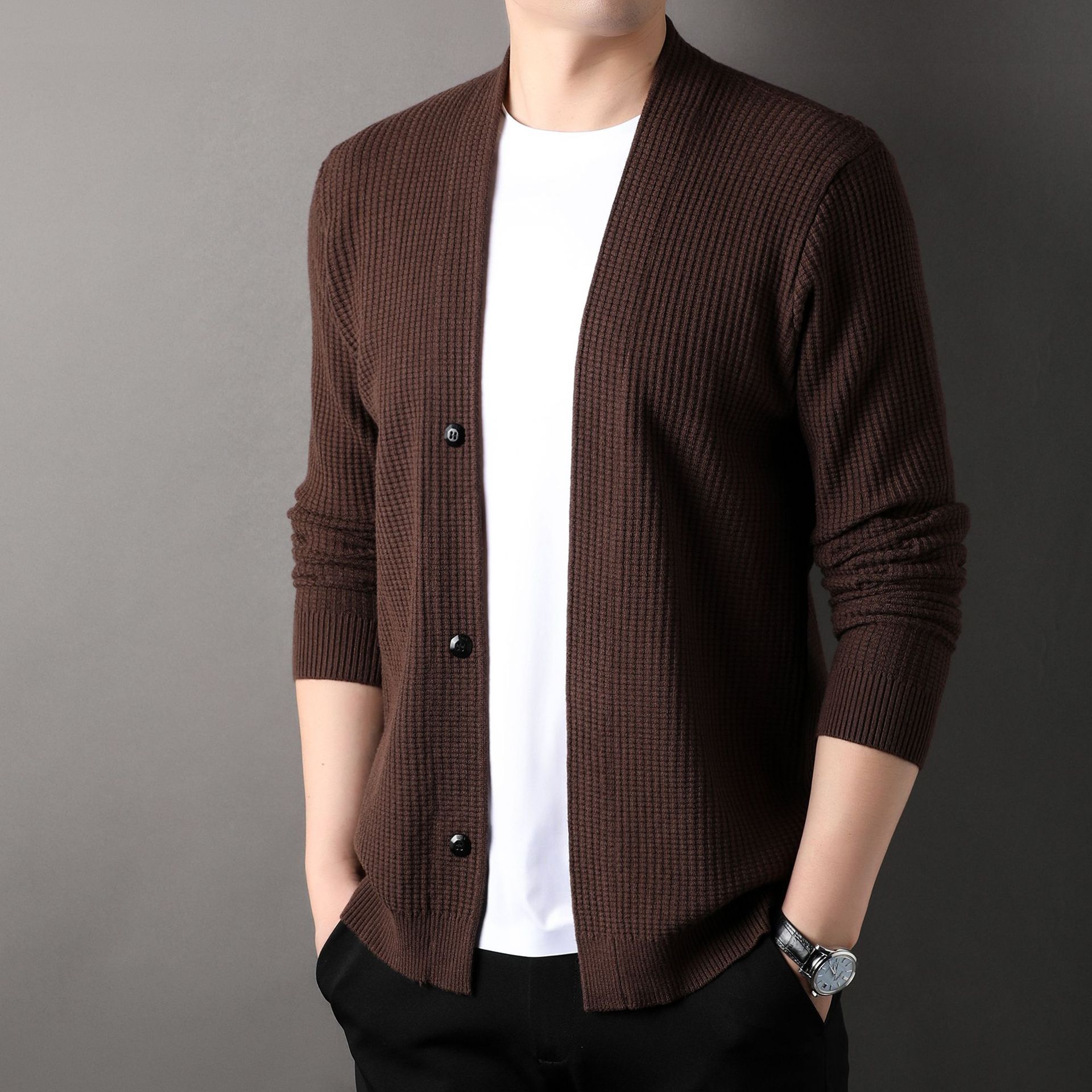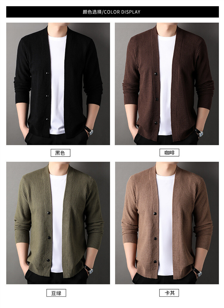 대외 무역 남성 가을 겨울 신작 남성 니트 가디건 편안하고 심플한 데일리 패션 다재다능한 캐주얼 위시 울