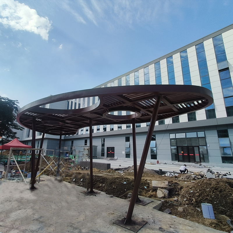 사용자 정의 스테인레스 스틸 복도 프레임 조각 대형 철강 구조 철제 빛나는 풍경 복도 새로운 중국 스타일 금속 복도 파빌리온