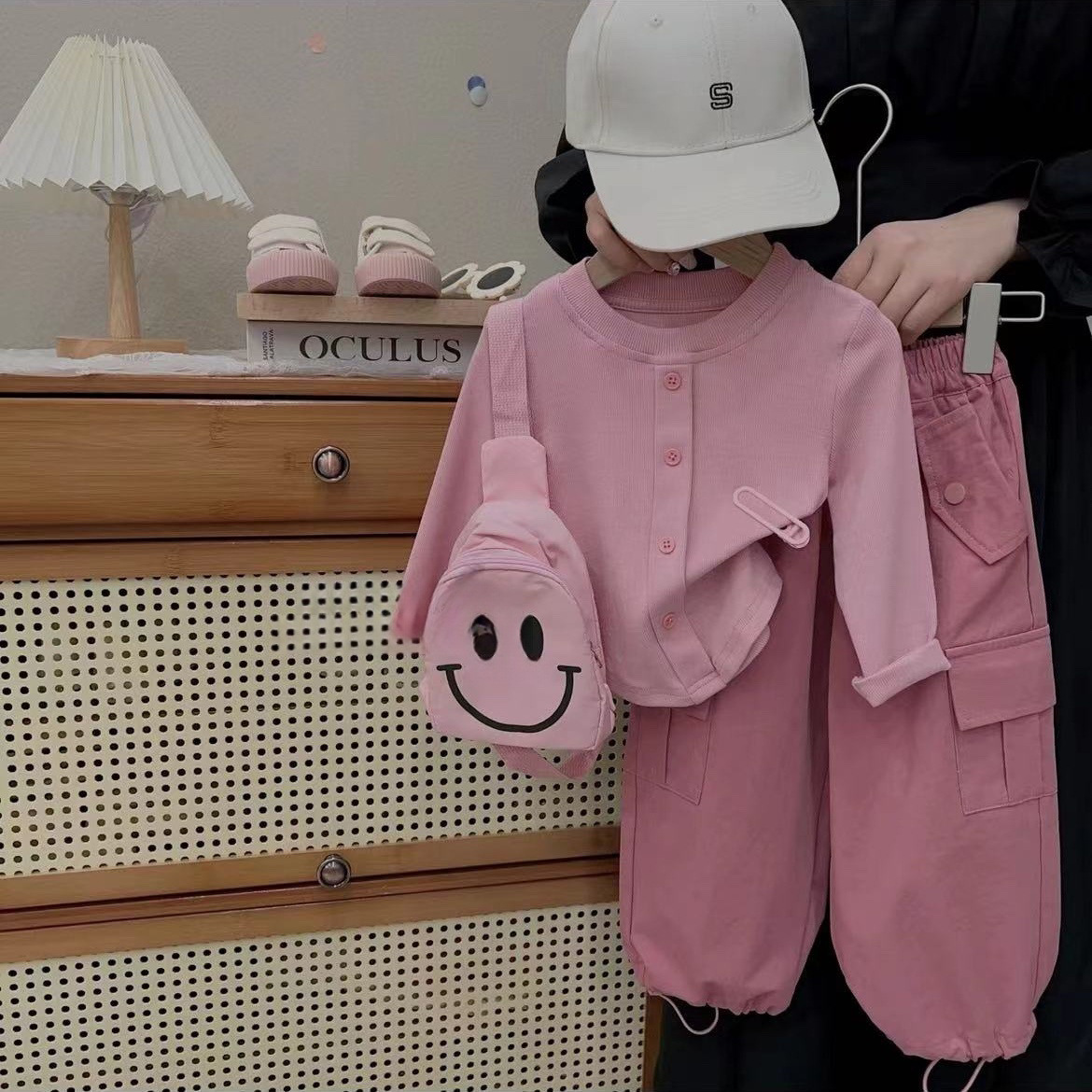 女童弹力打底衫2023秋新款中小童针织坑条T恤衫洋气百搭韩版上衣