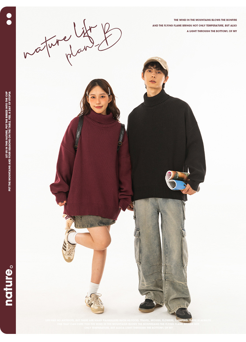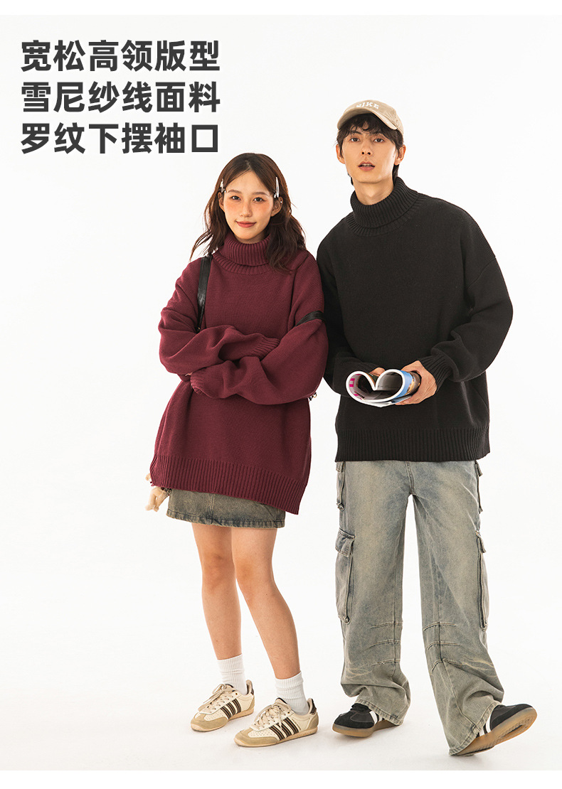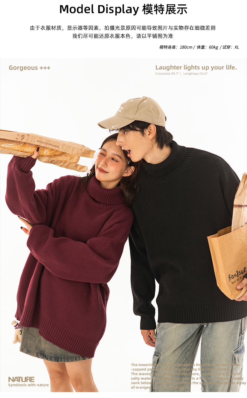 한루 남성복 단색 하이넥 스웨터 남성 겨울 신상품 레이지 스타일 일본풍 다용도 커플용 고급 니트웨어스토어 가기