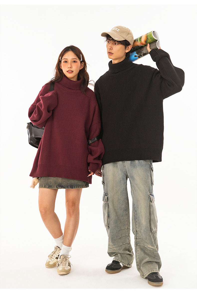 한루 남성복 단색 하이넥 스웨터 남성 겨울 신상품 레이지 스타일 일본풍 다용도 커플용 고급 니트웨어