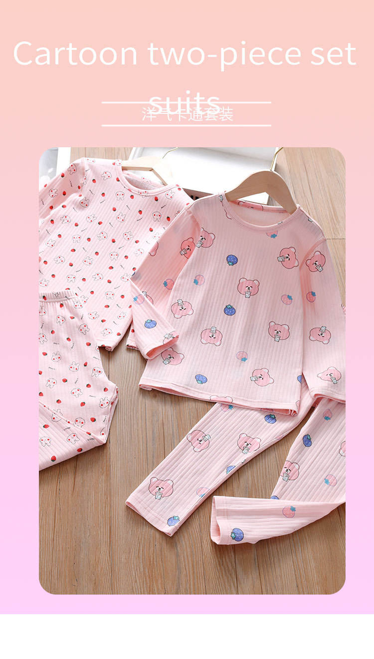 여자 홈웨어 세트 2025 새로운 봄, 가을 어린이 속옷 아기 만화 잠옷 투피스 세트 가을 옷과 긴 바지