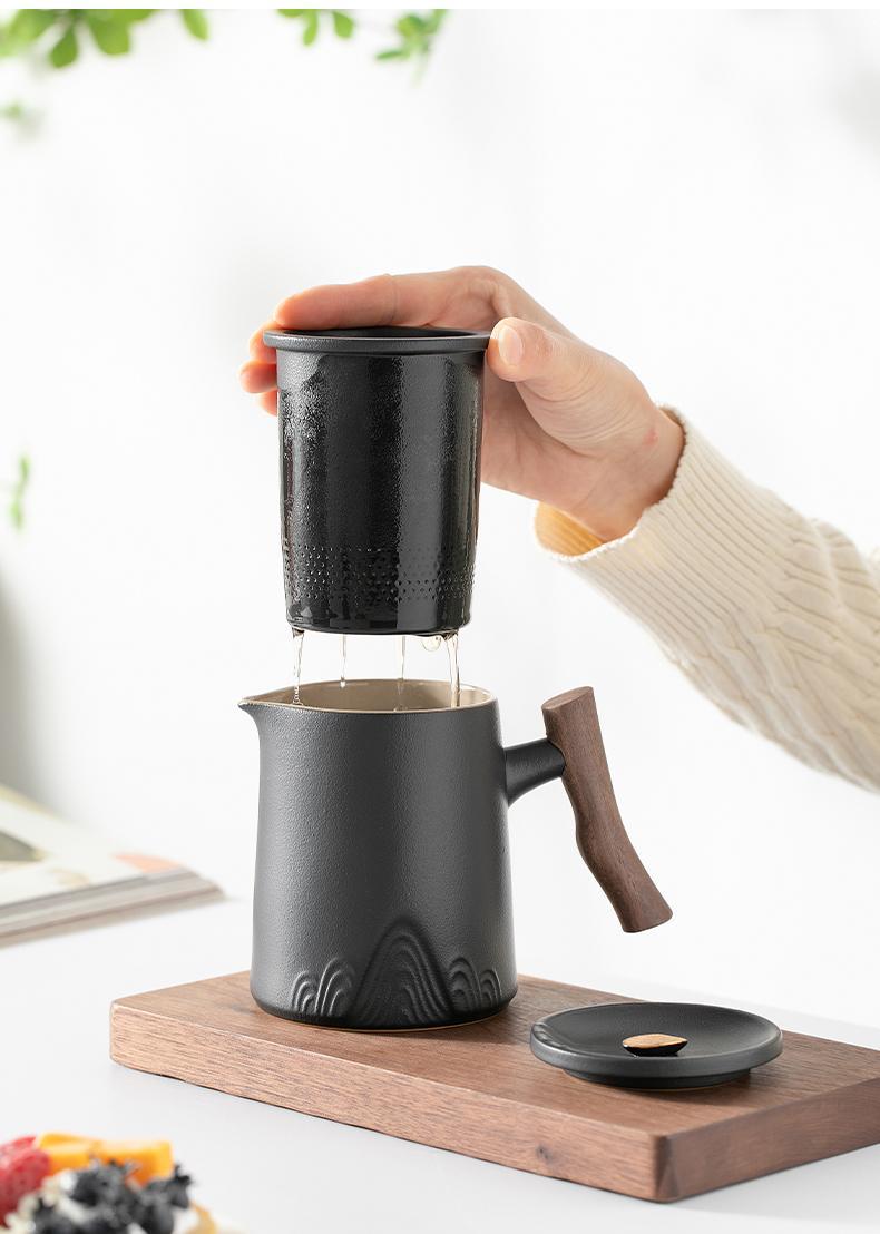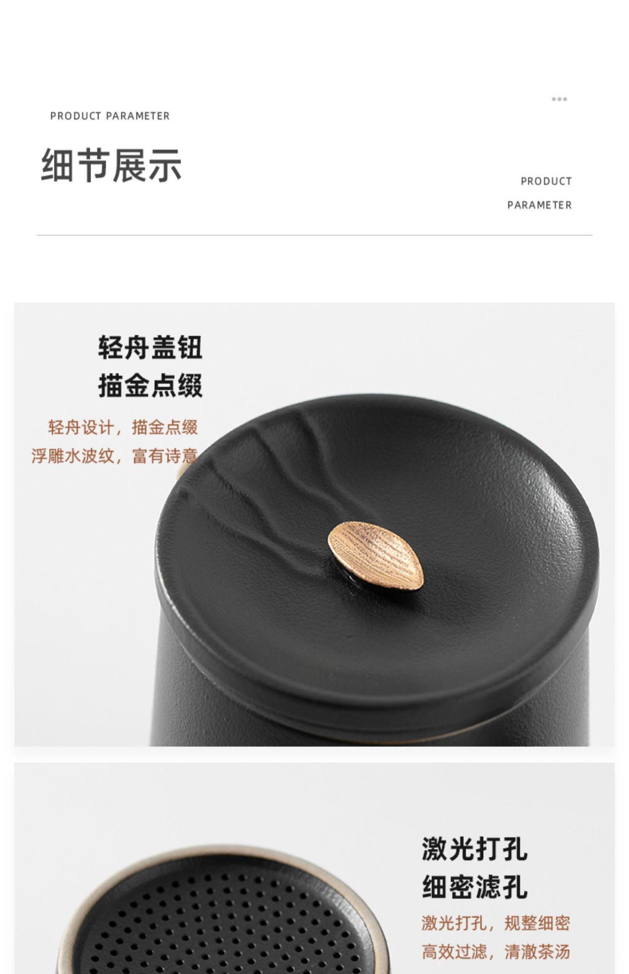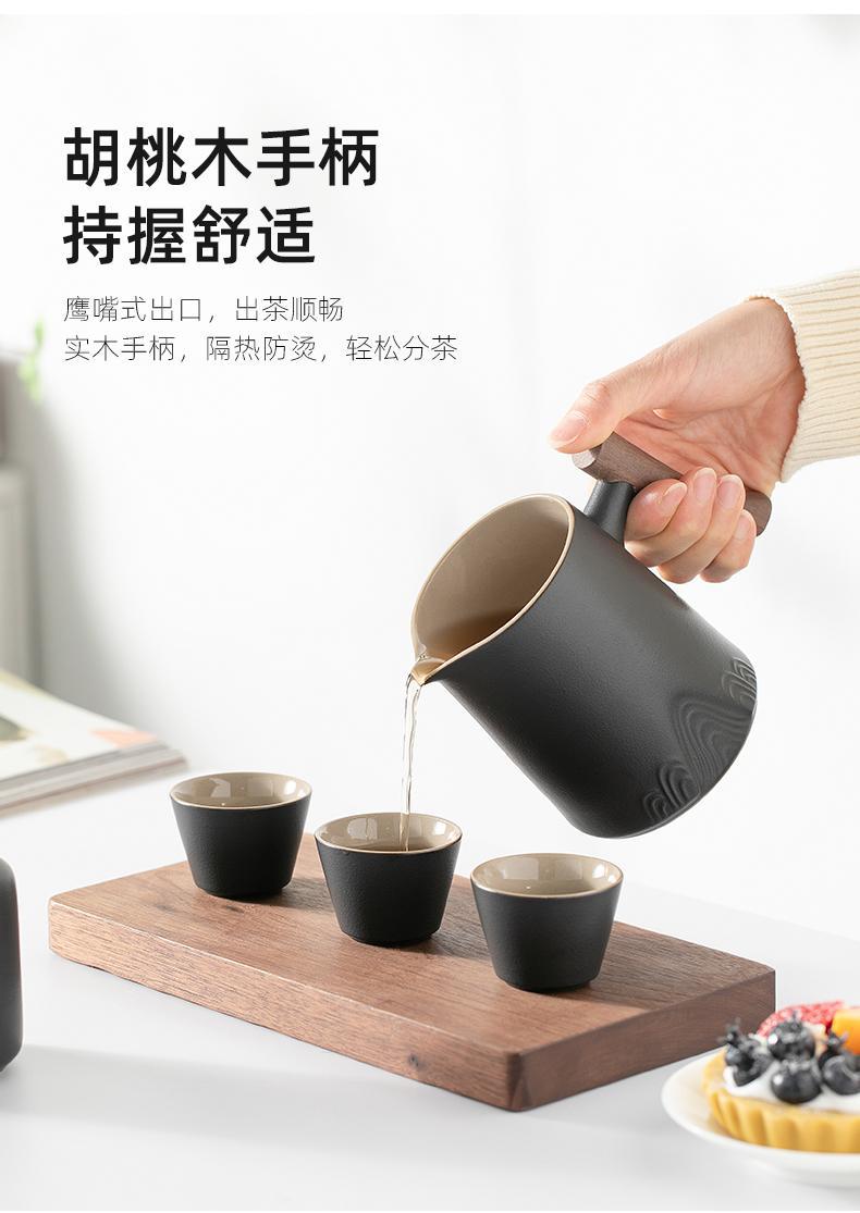 • Zhoushan 4 컵 + 차 캔 + 세라믹 접시-우아한 블랙 냄비