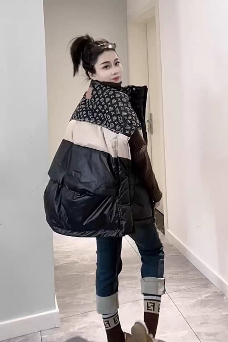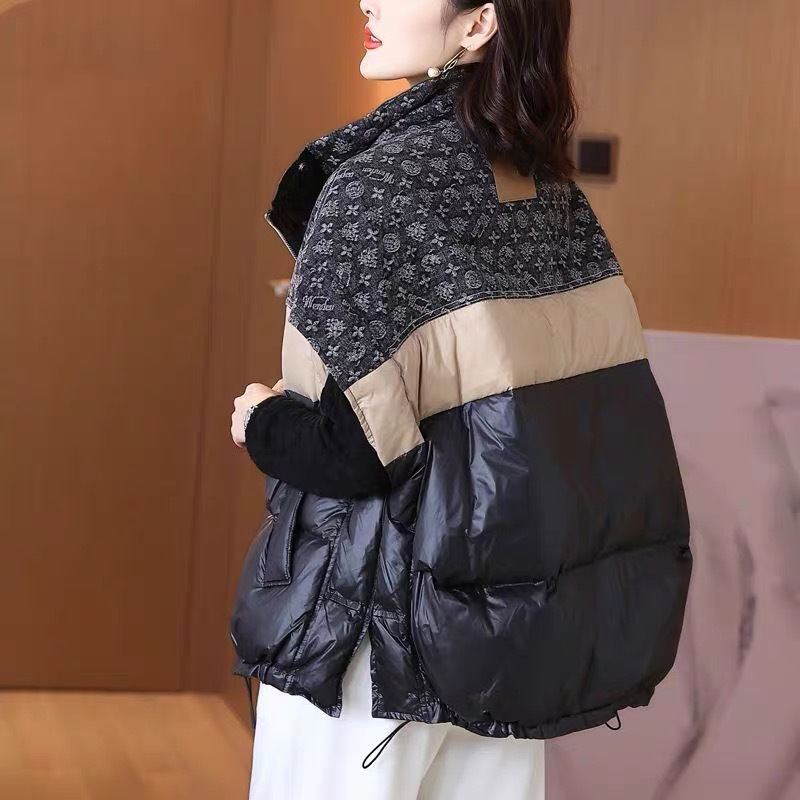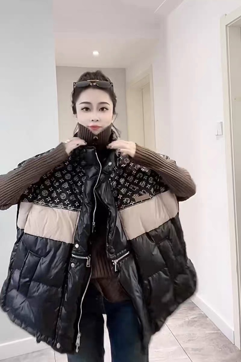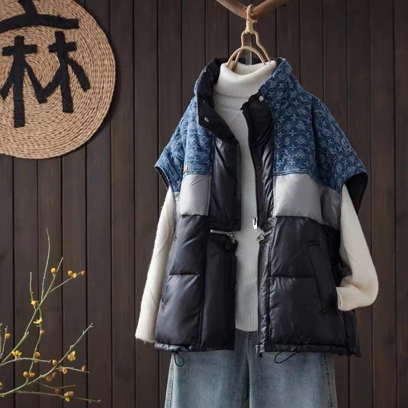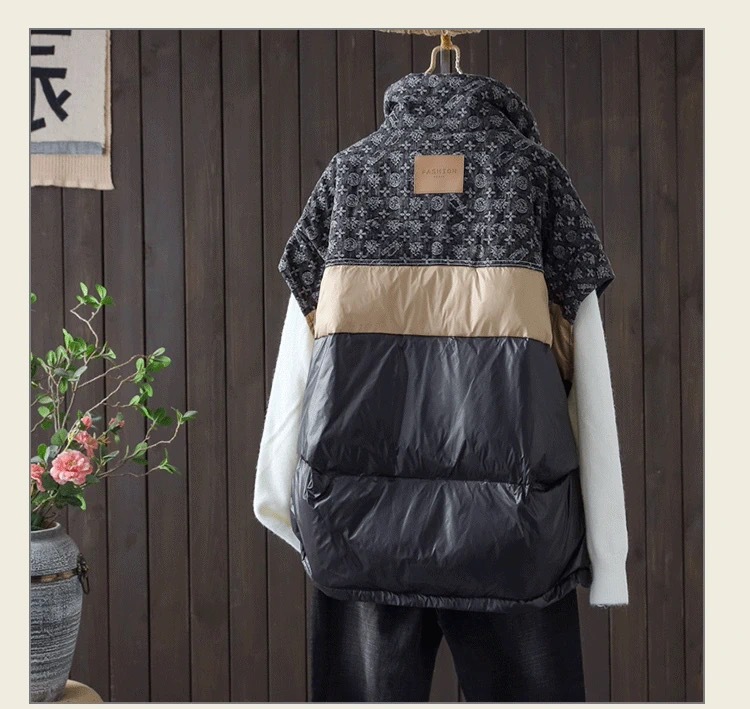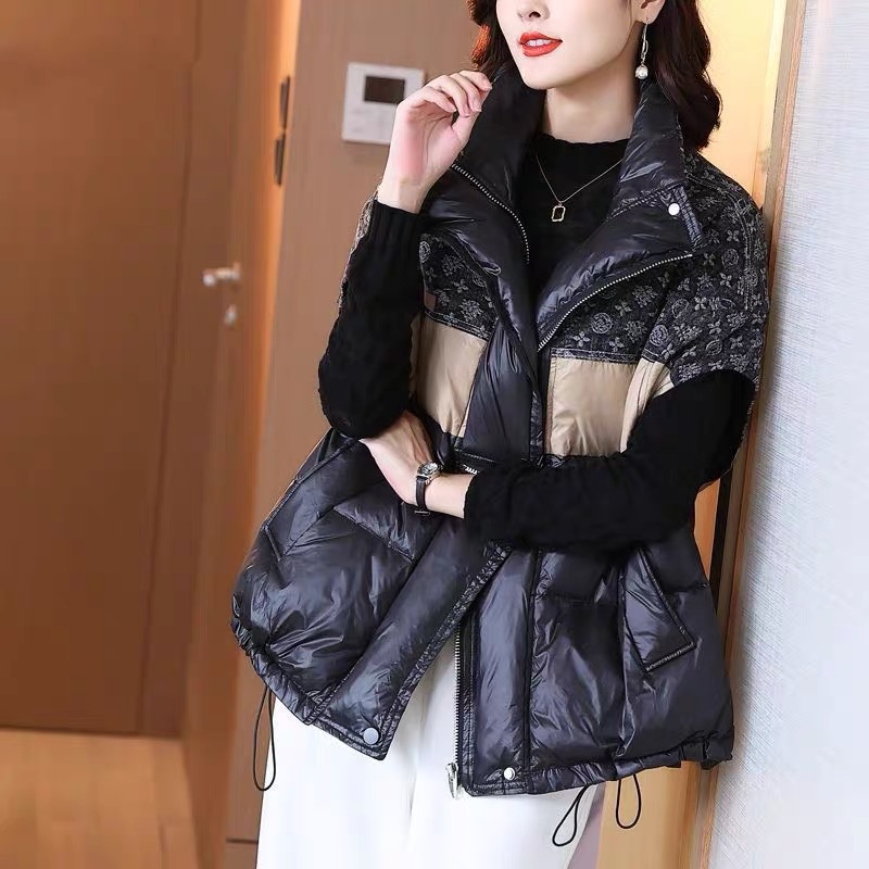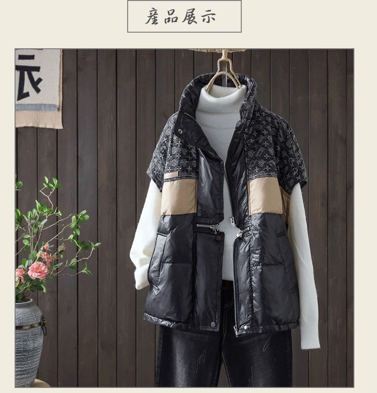 2025 가을 겨울 신상 배색 스탠드 칼라 한국 스타일 패션 루즈핏 다운 조끼 다용도 여성용 화이트 덕다운 재킷스토어 가기