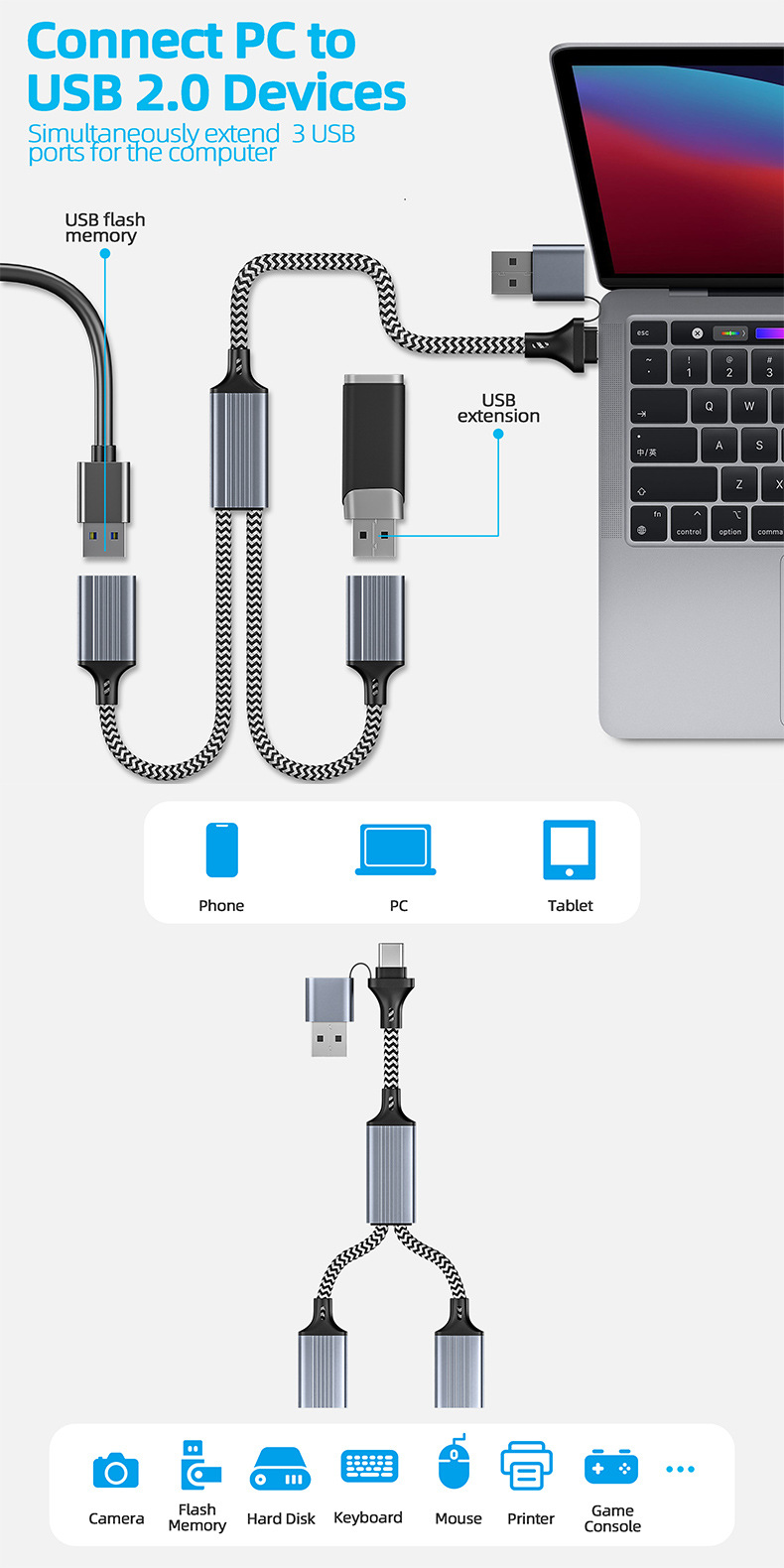 다기능 OTG 어댑터 c 확장 도크 마우스 키보드 U 디스크 HUB 스플리터 컴퓨터 일대일 변환 라인스토어 가기