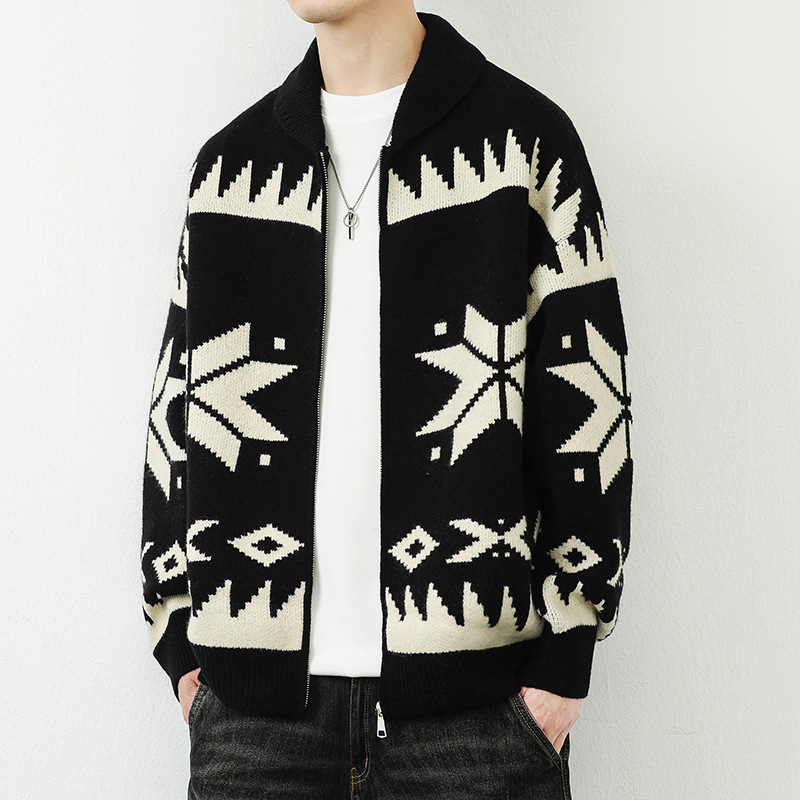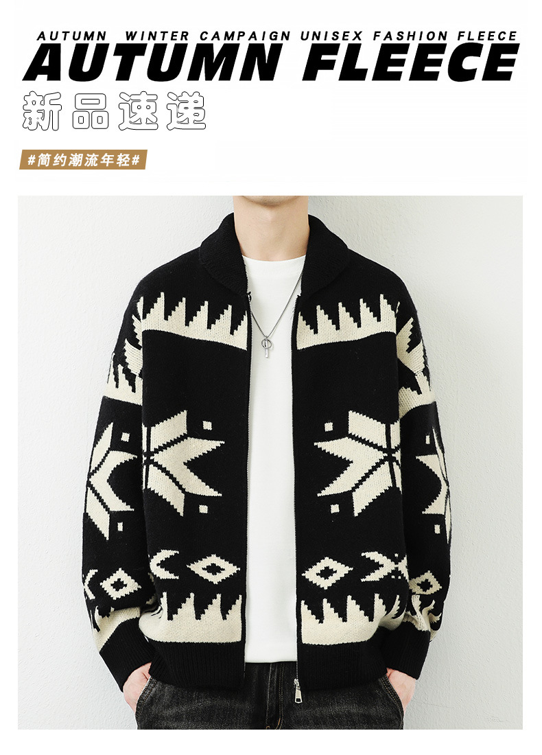 가을 2023 새로운 자카드 독특한 가디건 스웨터 남자의 일본식 느슨한 청소년 캐주얼 니트 스웨터 코트 트렌디스토어 가기