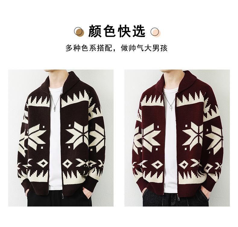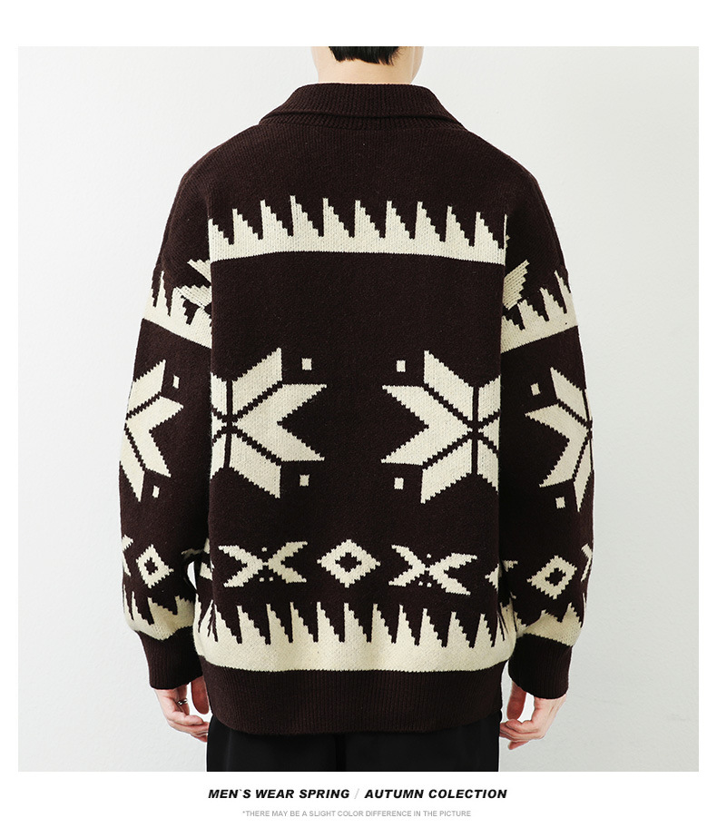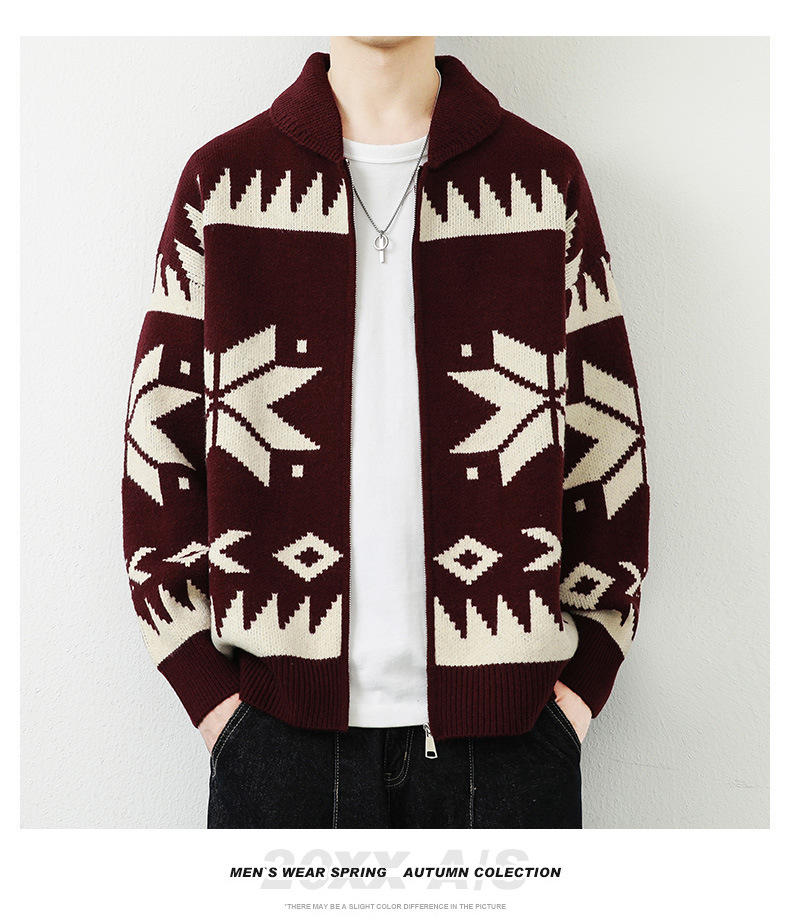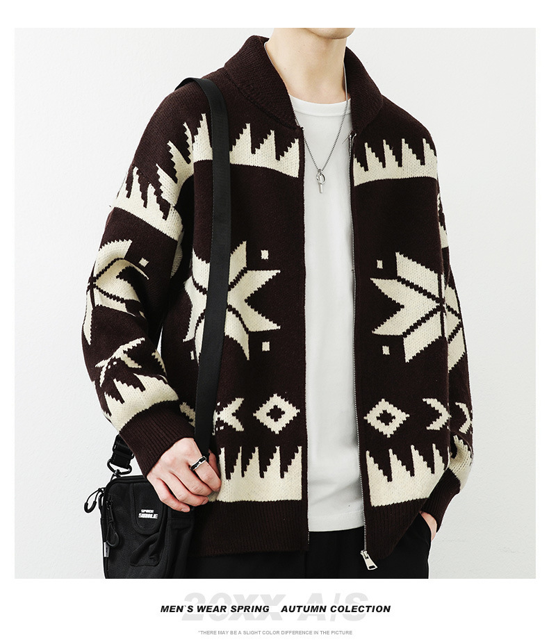 가을 2023 새로운 자카드 독특한 가디건 스웨터 남자의 일본식 느슨한 청소년 캐주얼 니트 스웨터 코트 트렌디