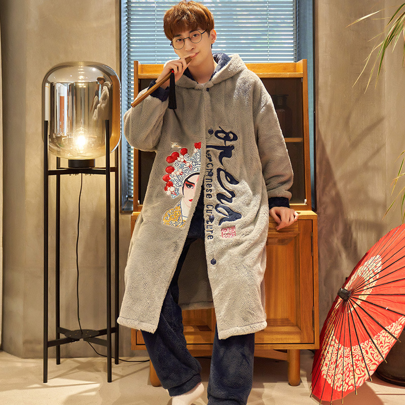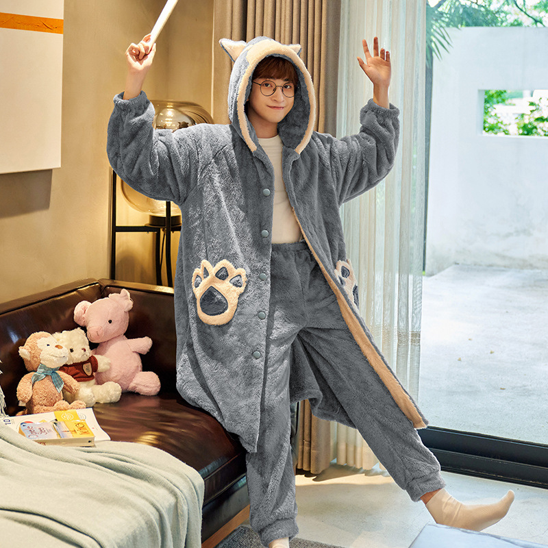 Caini 사랑 커플 잠옷 여자의 가을과 겨울 잠옷 두꺼운 따뜻한 플란넬 남자의 아웃웨어 가정 의류 세트스토어 가기