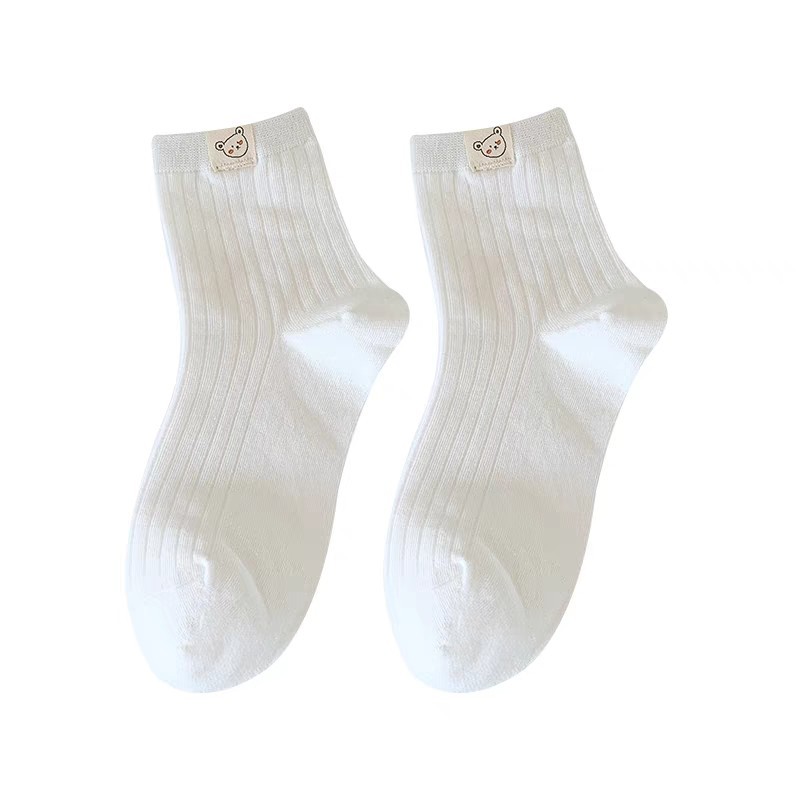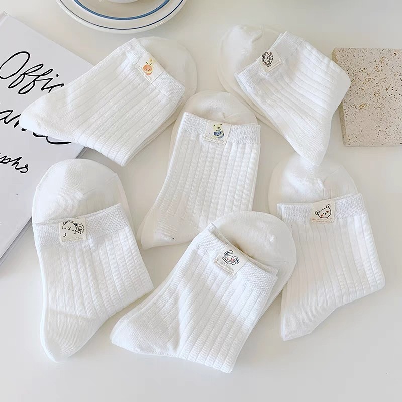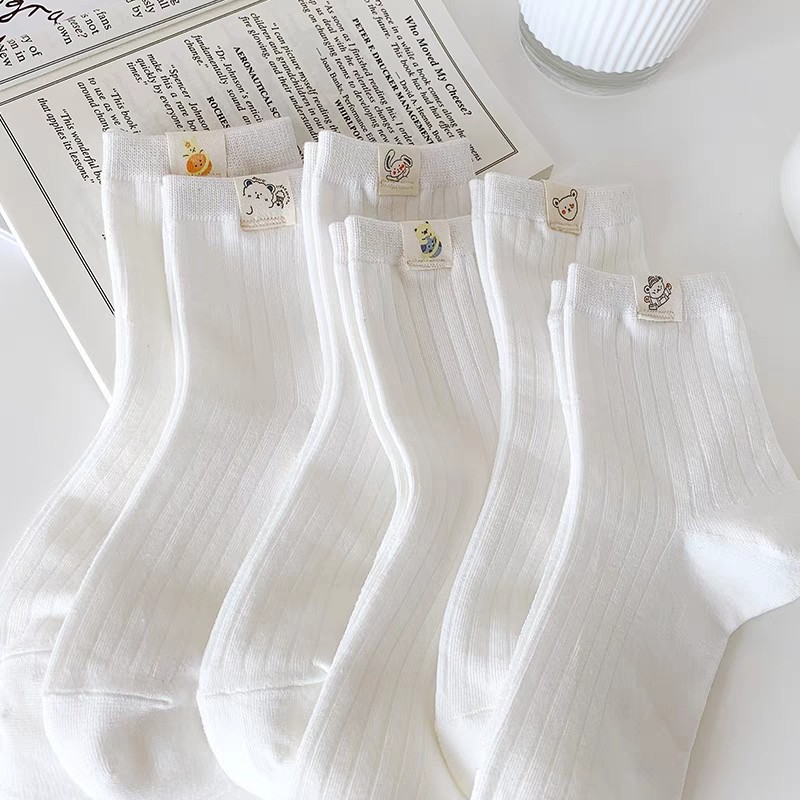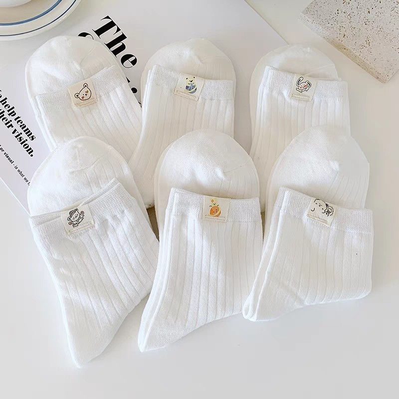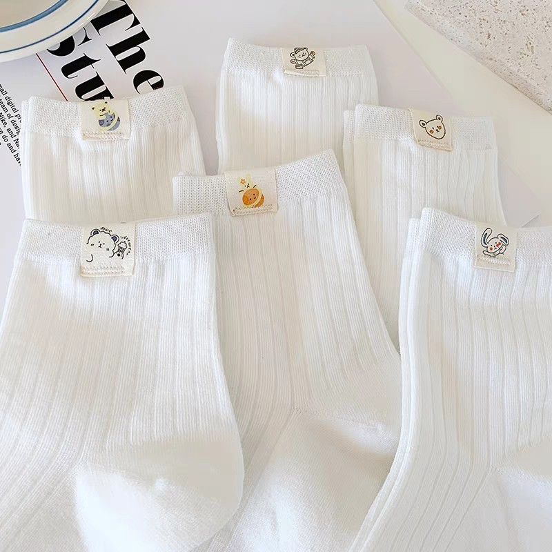 흰색 천 라벨 양말 여성용 중간 길이 양말 유행 면 양말 봄과 가을 얇은 귀여운 일본 학생 여아 스타킹