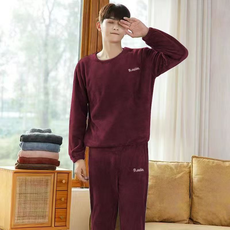 산호 벨벳 커플 잠옷 남성과 여성의 겨울 두꺼운 기모 아웃웨어 요정 따뜻한 세트 가정 의류 투피스 세트