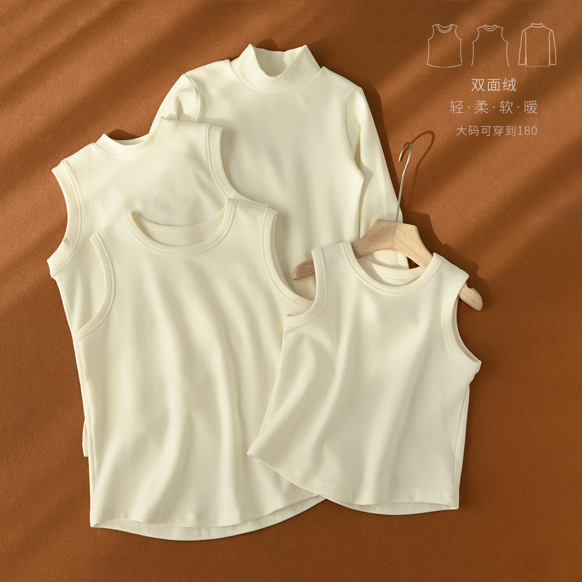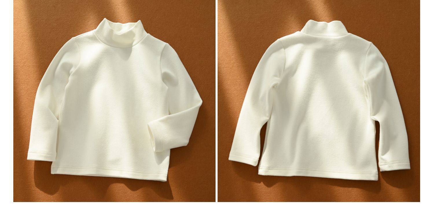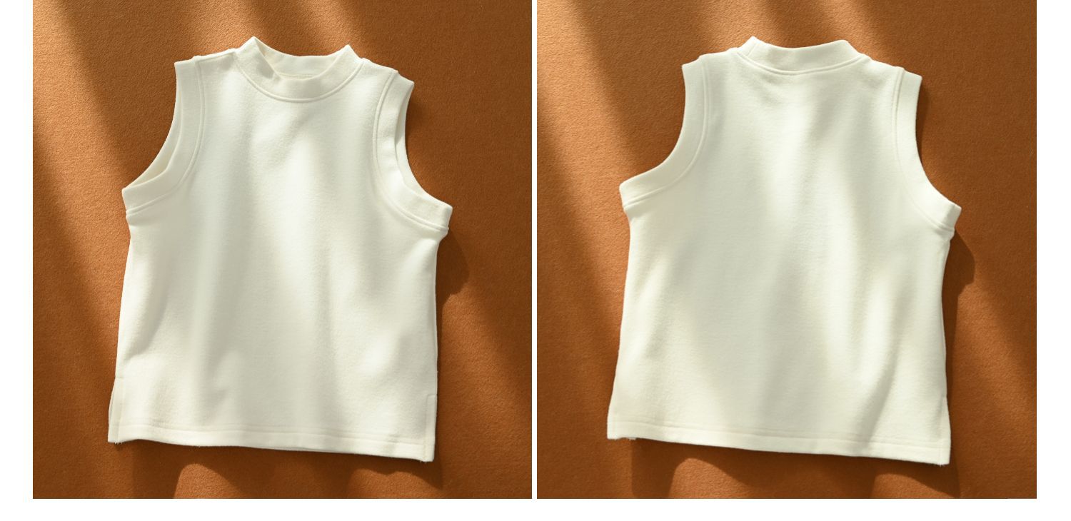 背心半高领设计,有的宝宝可能穿不惯高领,这种领高就很合适