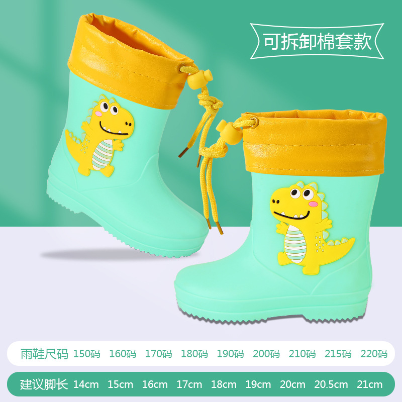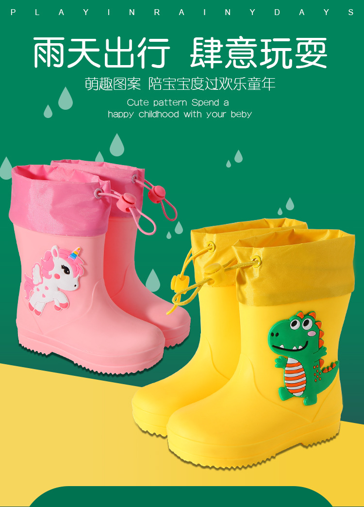 어린이 장화 만화 귀여운 소년과 소녀 어린이 착용 방수 장화 작업 바지 어린이 아기 미끄럼 방지 고무 신발스토어 가기