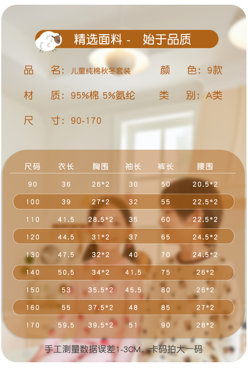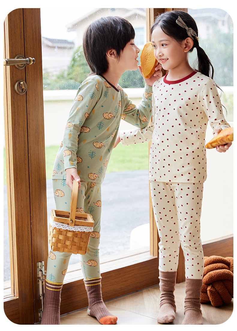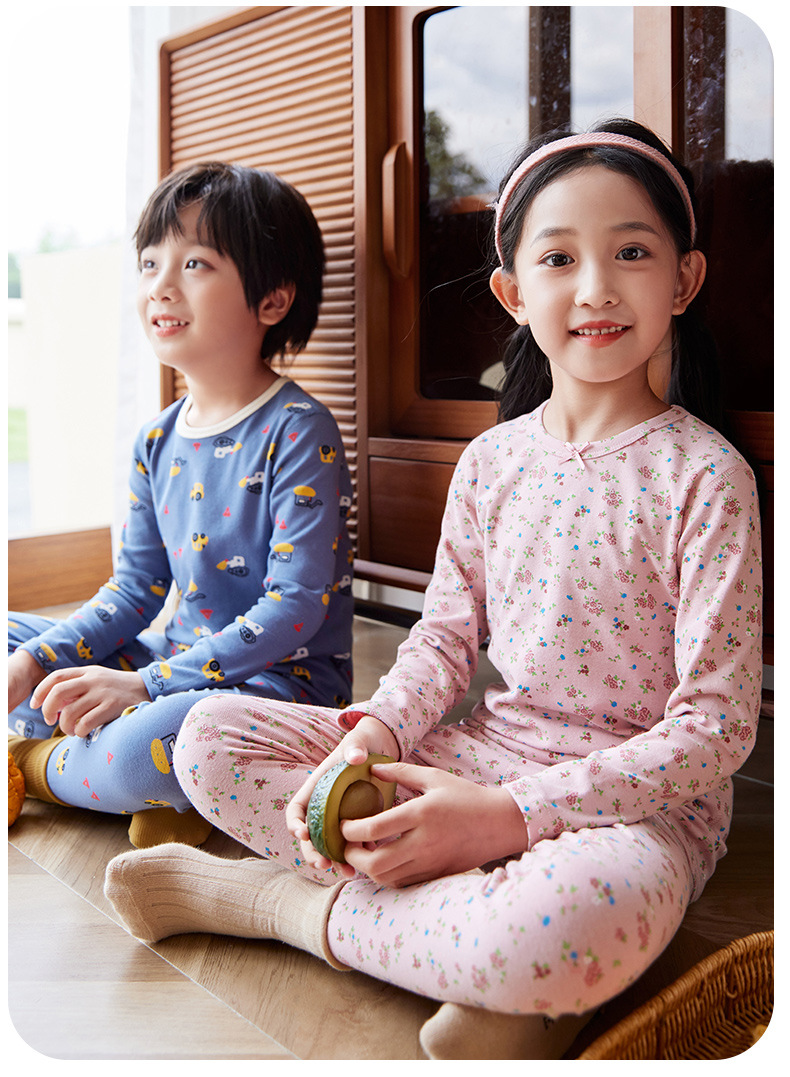5A 항균 어린이 속옷 세트 소년 소녀 따뜻한 가을 옷 가을 바지 라이크라 면 인쇄 면 스웨터 잠옷 도매