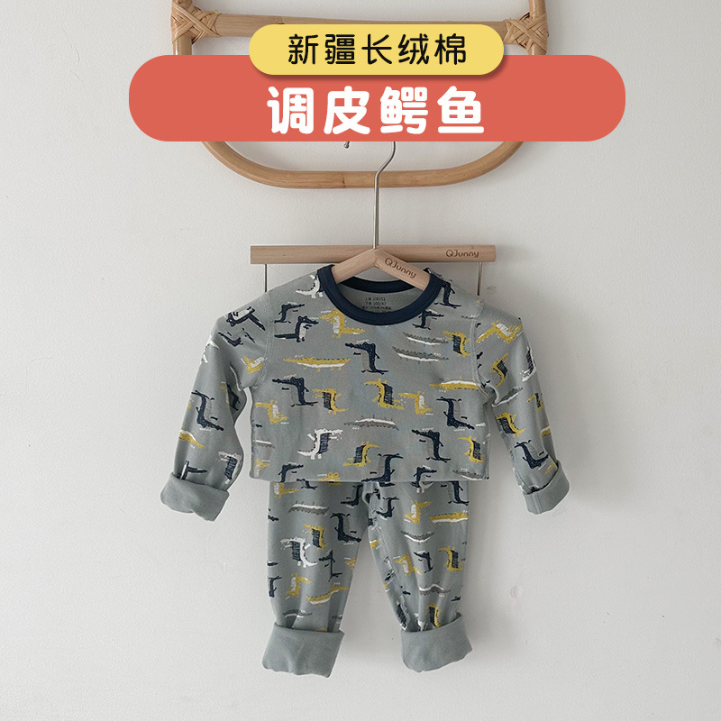 5A 항균 어린이 속옷 세트 소년 소녀 따뜻한 가을 옷 가을 바지 라이크라 면 인쇄 면 스웨터 잠옷 도매스토어 가기