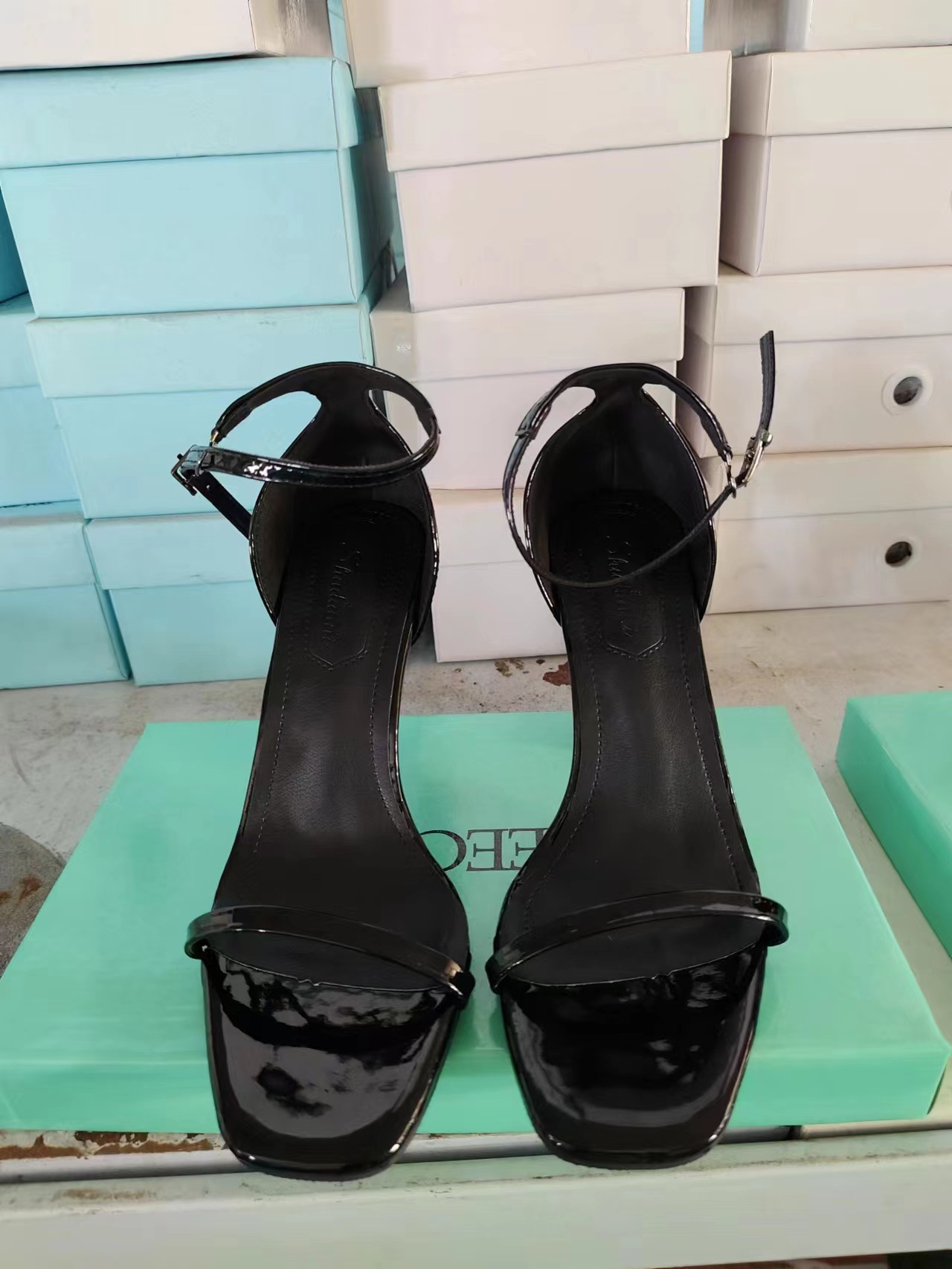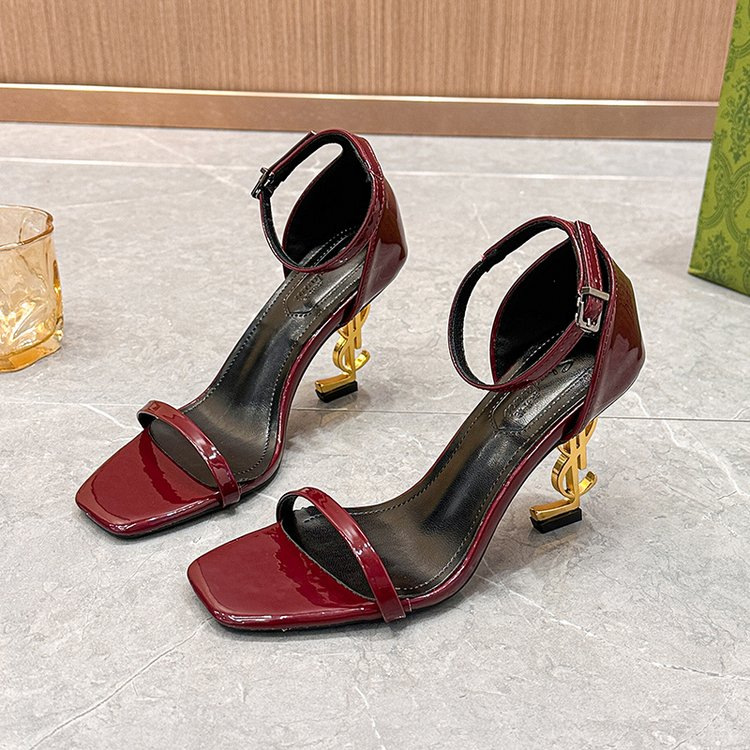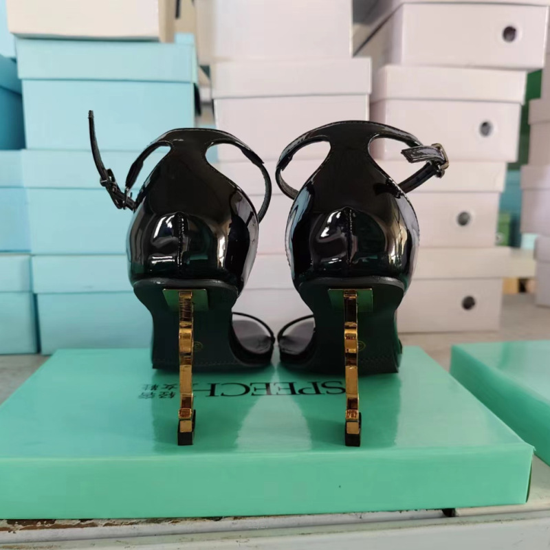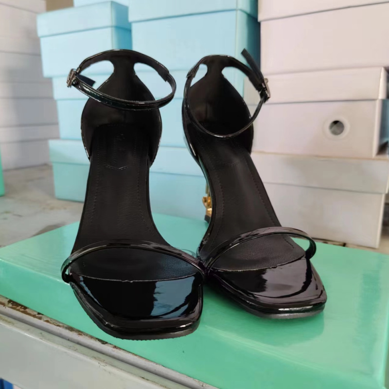 진짜 사진 하이힐 샌들 여성용 2025 새로운 유럽과 미국의 패션 메탈 스퀘어 버클 섹시 하이힐스토어 가기