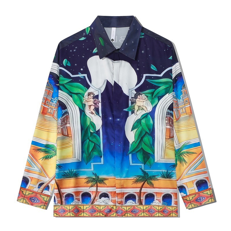 2023 유럽과 미국의 하이 스트리트 엔젤 플라워 셔츠 긴팔 레트로 럭셔리 셔츠 청소년 커플 가디건 남성용스토어 가기
