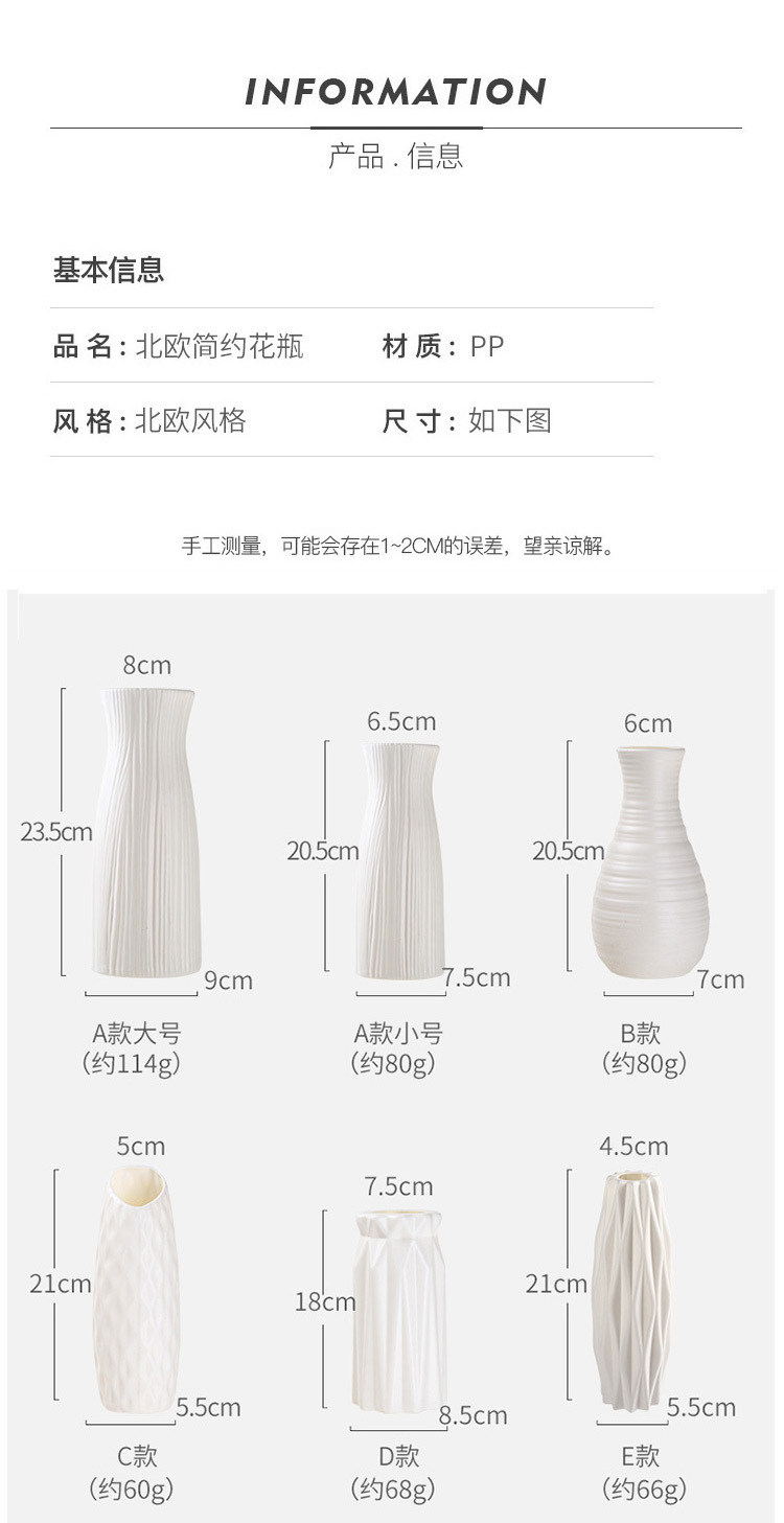 북유럽 스타일 플라스틱 꽃병 크리 에이 티브 홈 거실 식당 말린 꽃 배열 장식 장식품 낙하 방지 시뮬레이션 작은 꽃병스토어 가기