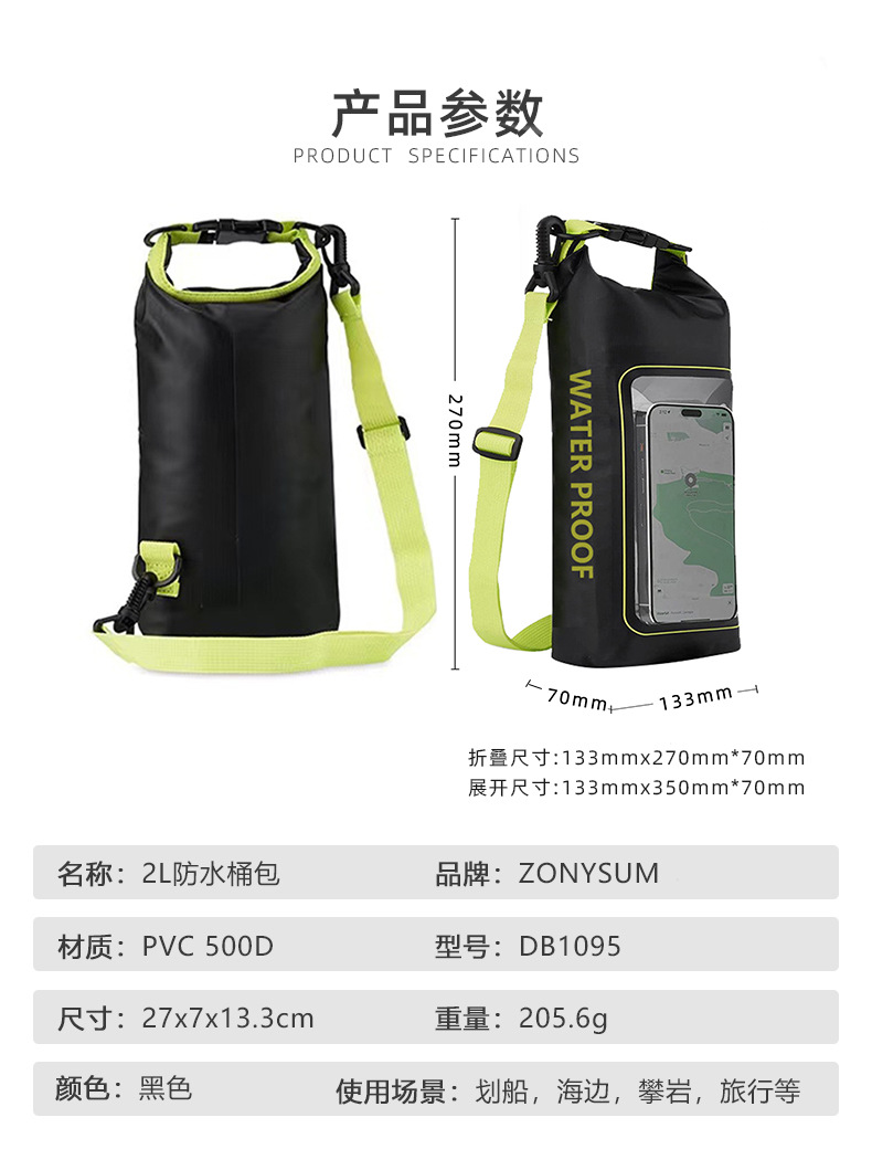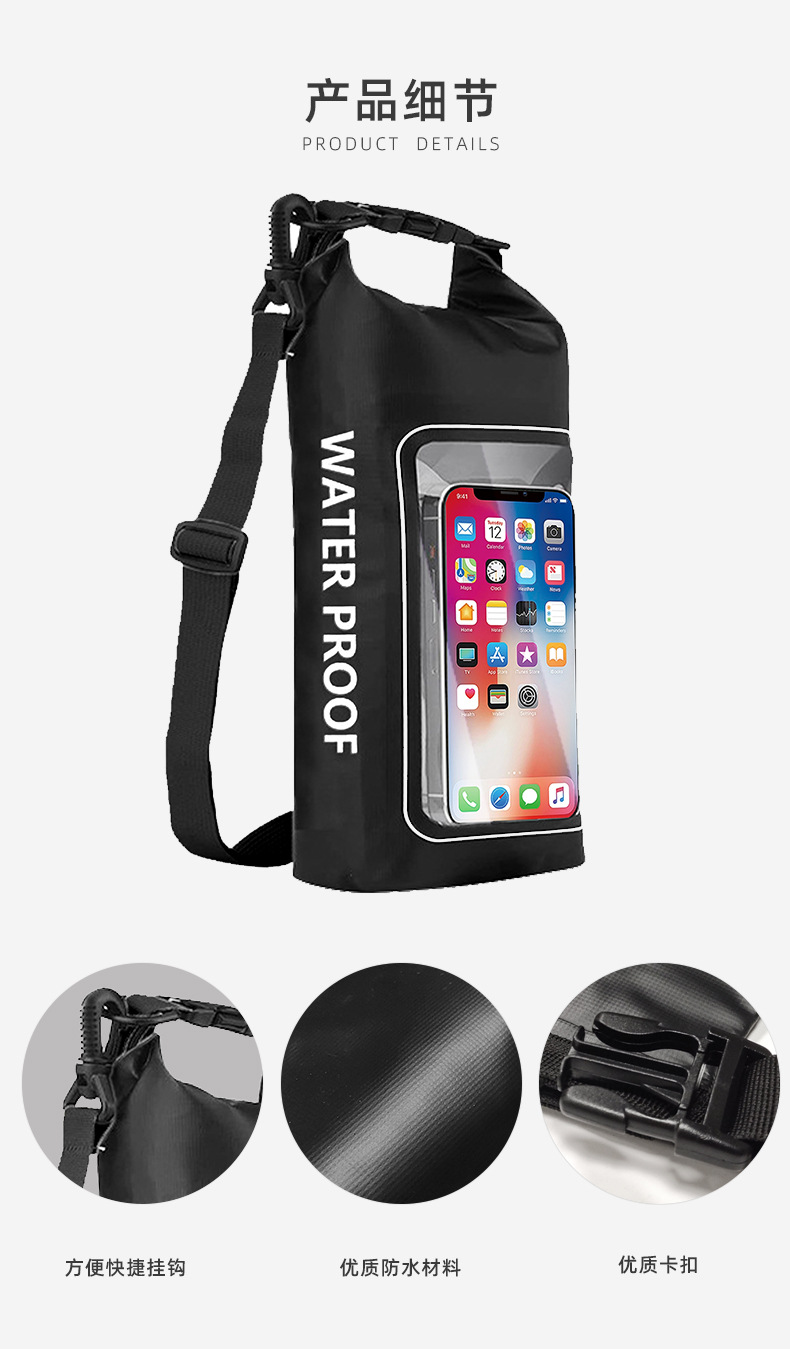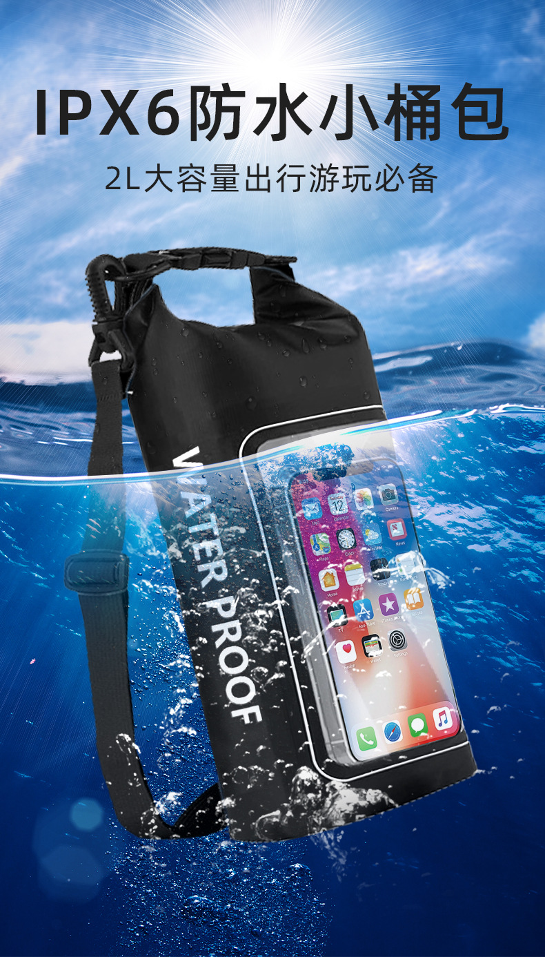 국경 간 뜨거운 판매 2L 방수 배럴 가방 대용량 PVC 야외 표류 크로스 오버 백 터치 스크린 휴대 전화 방수 가방