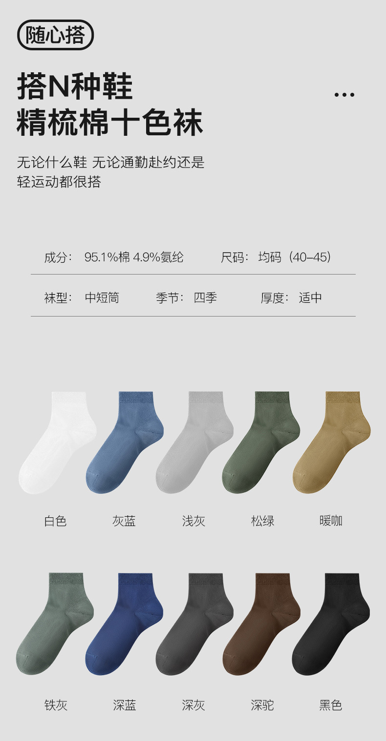 【개별 포장】7A 항균 사계절 수제 봉제 100% 순면 양말 남성용 중간 길이 가을 겨울 스타일스토어 가기