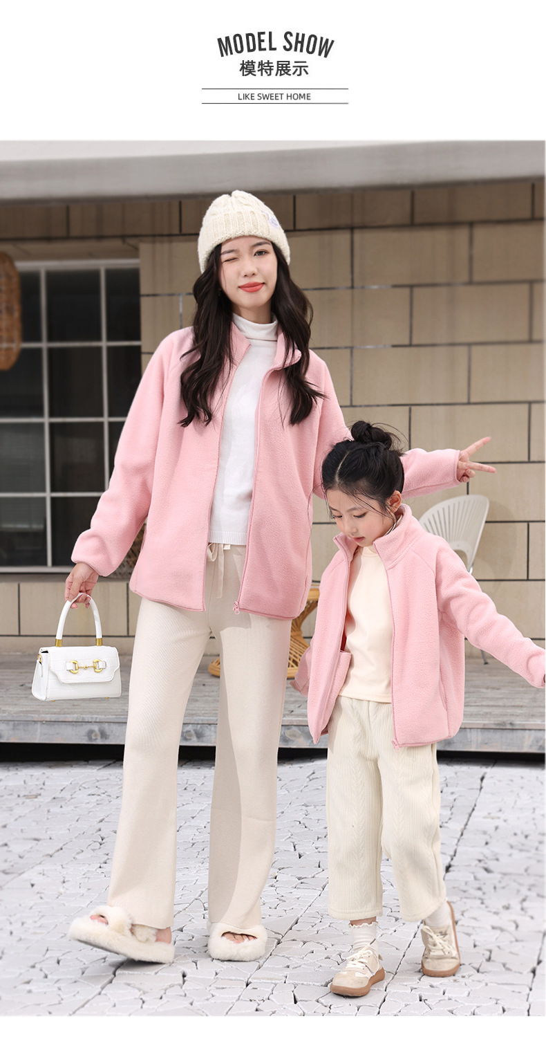 어린이 양털 코트 부모-자식 스타일 성인 착용 중형 및 대형 어린이 따뜻한 방풍 부모-자식 스타일 세로 칼라 따뜻한 코트