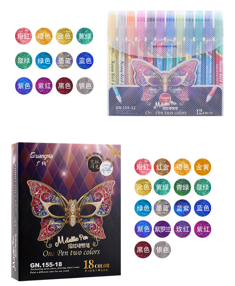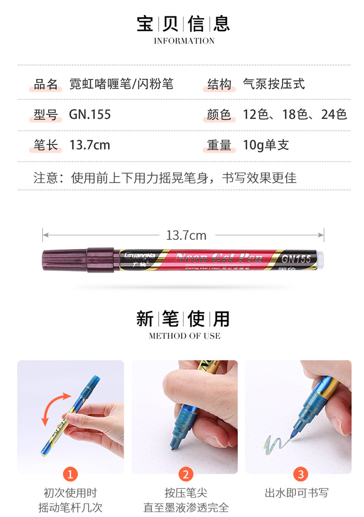 광나 155 형광펜 어린이 검은 판지 진주 광택 플래시 젤 펜 형광 반짝이 금성 반짝이 펜