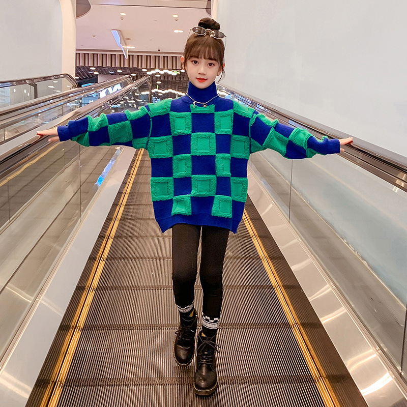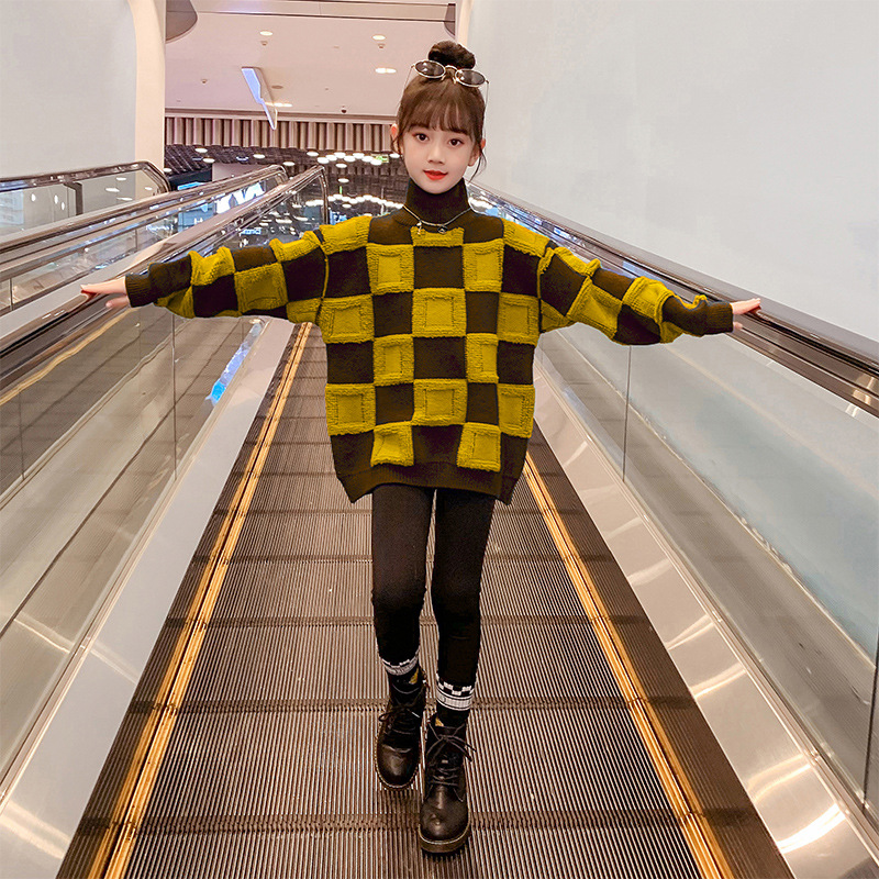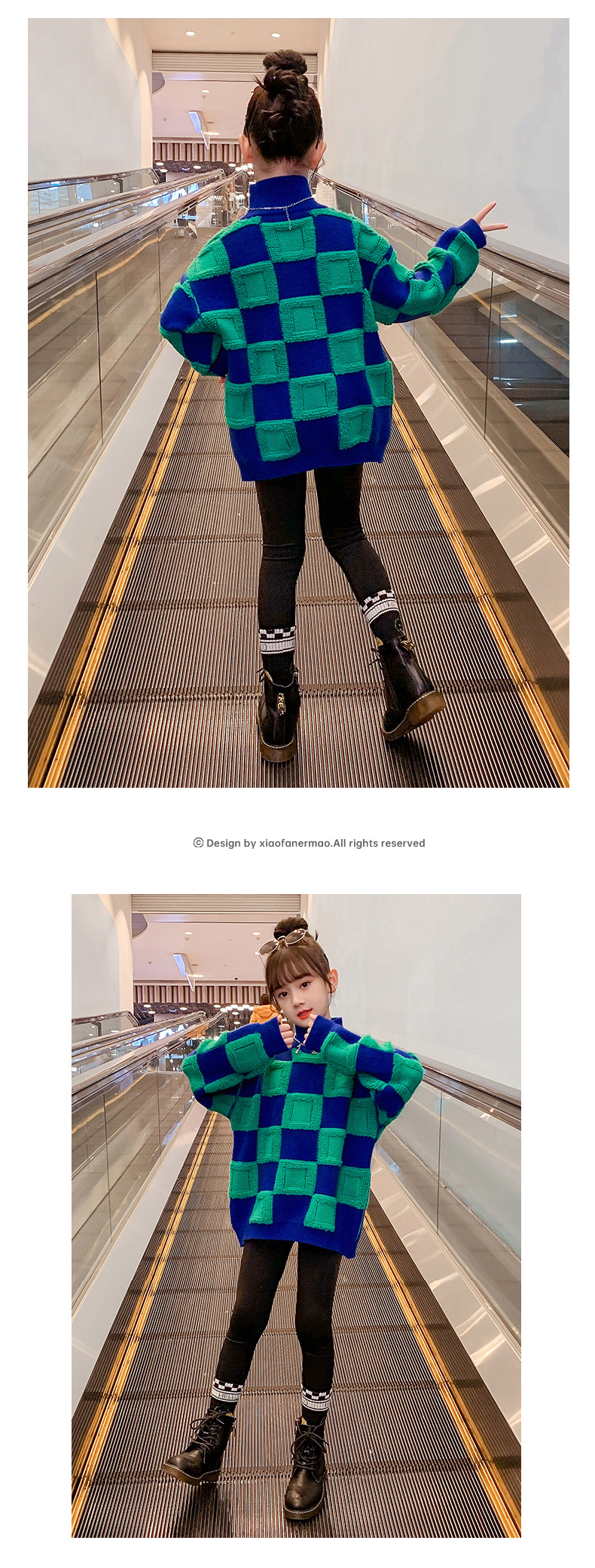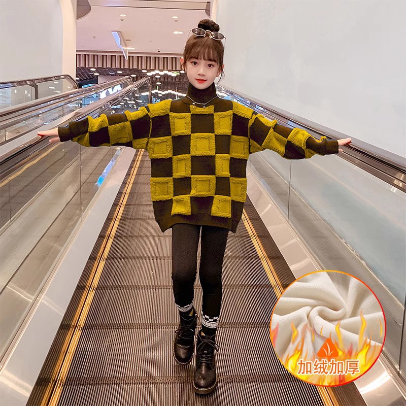 여자 서양식 스웨터 2024 가을/겨울 새로운 어린이 한국 스타일 기모 중대형 어린이를위한 두꺼운 스웨터 따뜻한 겨울 패션