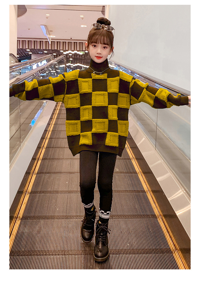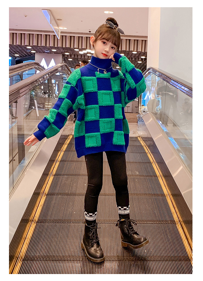 여자 서양식 스웨터 2024 가을/겨울 새로운 어린이 한국 스타일 기모 중대형 어린이를위한 두꺼운 스웨터 따뜻한 겨울 패션스토어 가기