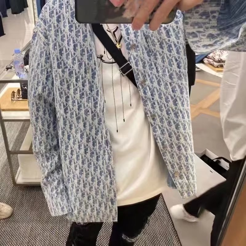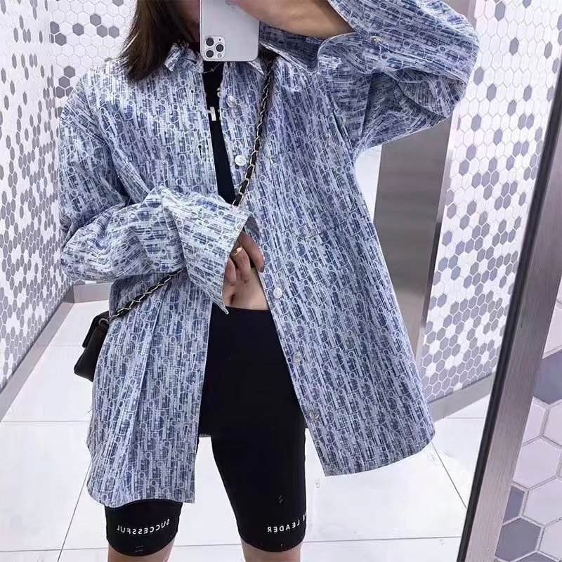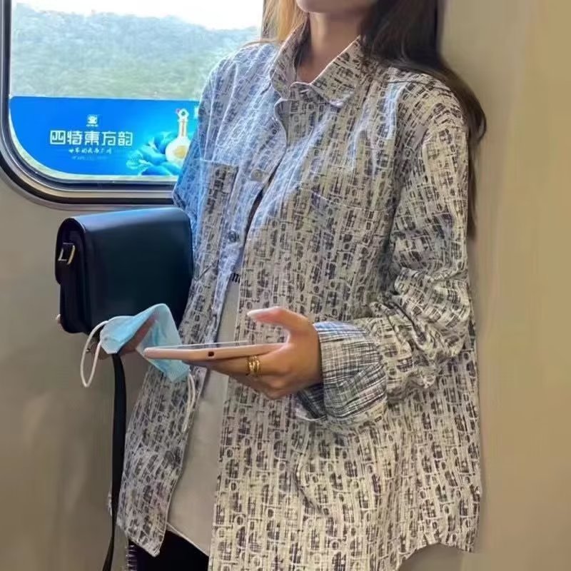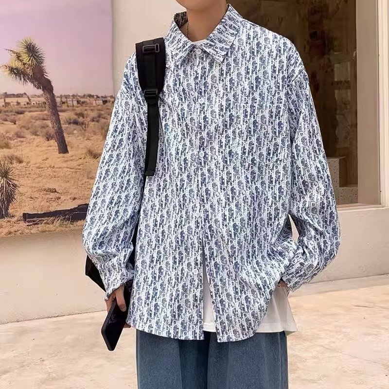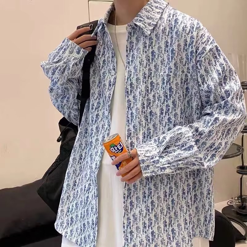 일본식 긴팔 셔츠 남자의 여름 한국 스타일 고급 기하학 프린트 캐주얼 셔츠 유행 브랜드 느슨한 커플 재킷스토어 가기