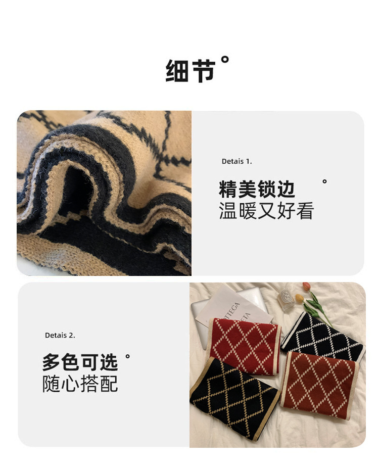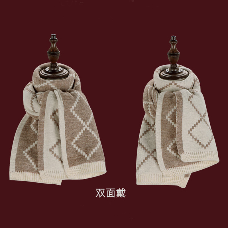 부드러운 격자 무늬 양면 다이아몬드 스카프 여성의 가을과 겨울 따뜻한 두꺼운 숄 이중 목적 모조 캐시미어 니트 스카프 패션스토어 가기