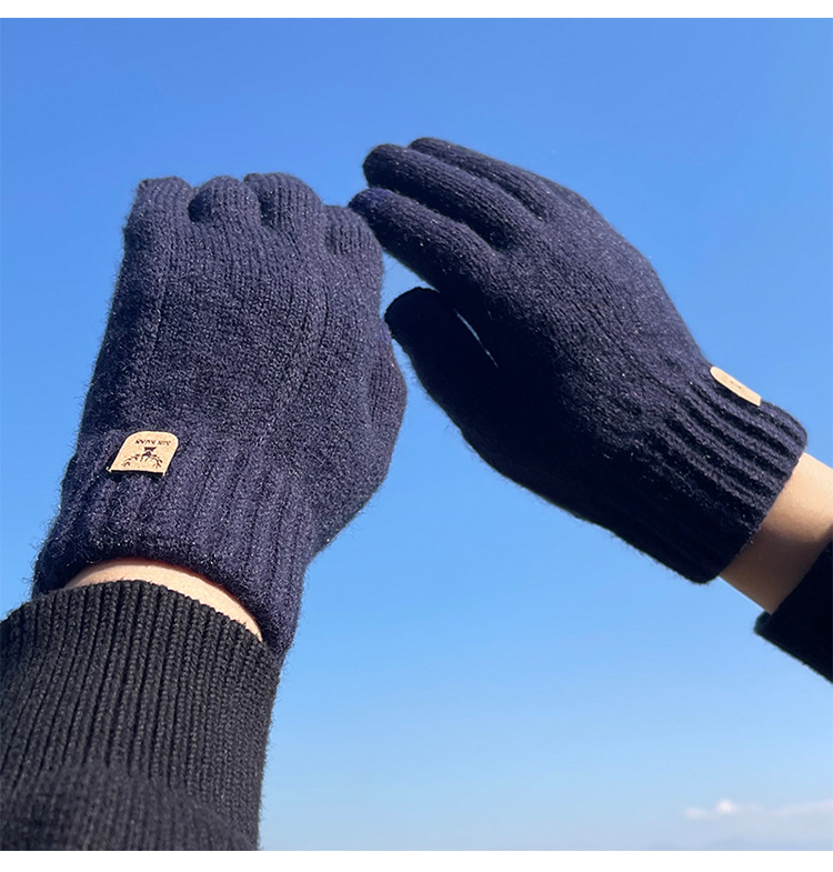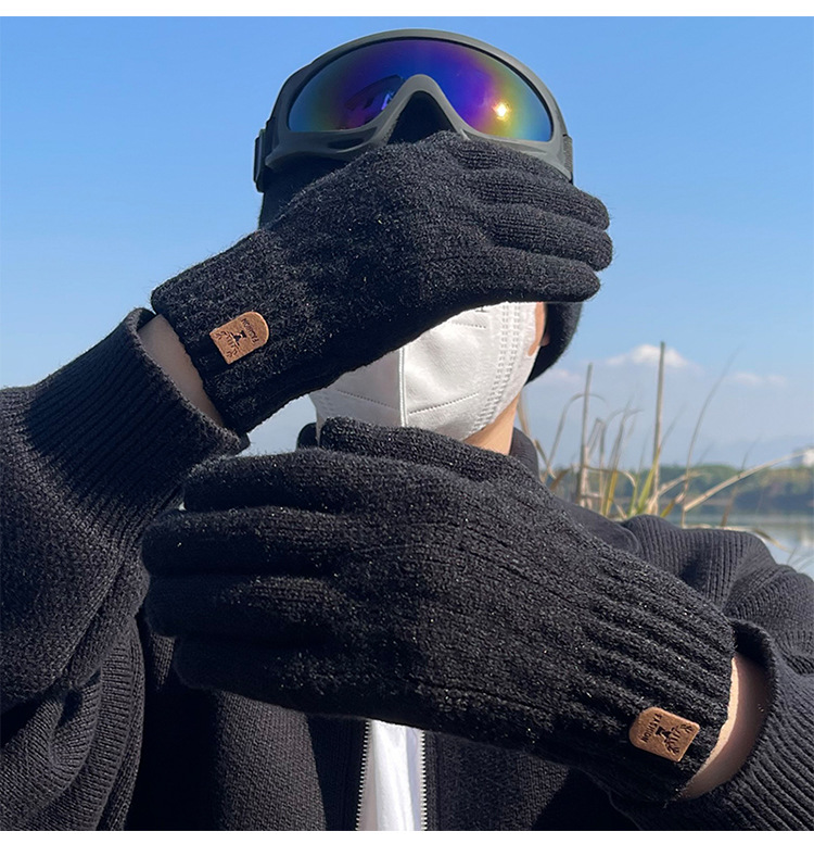 터치 스크린 울 니트 장갑 겨울 전기 자동차 타기 운전 두꺼운 따뜻한 방한 남성용 손가락 장갑스토어 가기