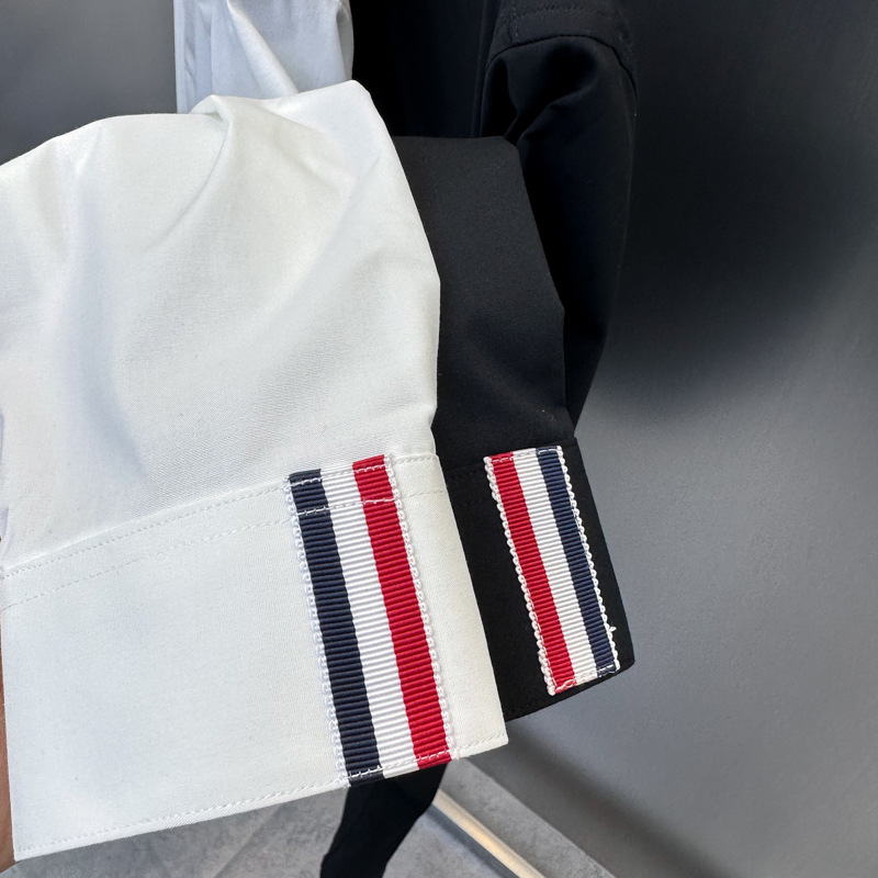 • 블랙 슬리브 칼라 쓰리바 리본 셔츠