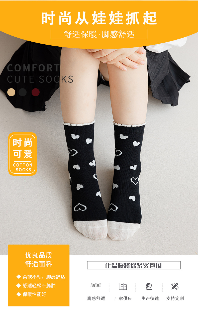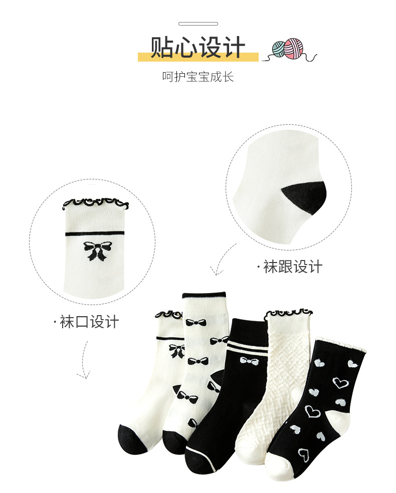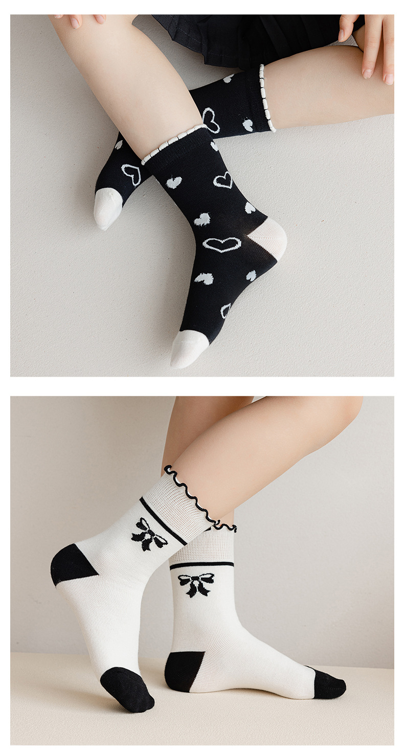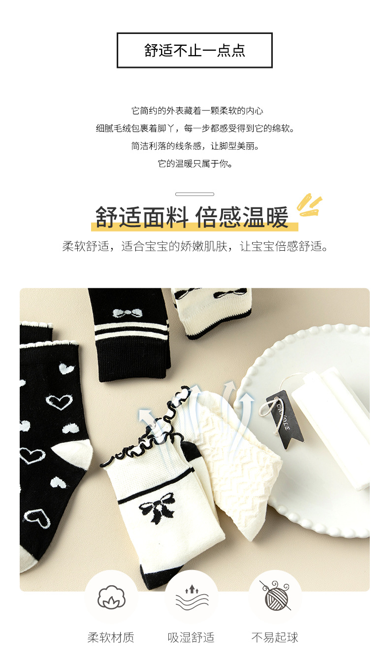 가을과 겨울 어린이 흑백 만화 양말 한국 스타일 달콤한 공주 양말 소녀 양말 귀여운 학생 아기