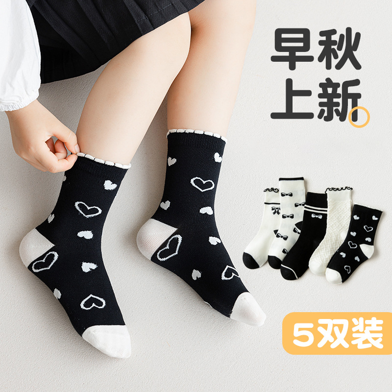 가을과 겨울 어린이 흑백 만화 양말 한국 스타일 달콤한 공주 양말 소녀 양말 귀여운 학생 아기스토어 가기
