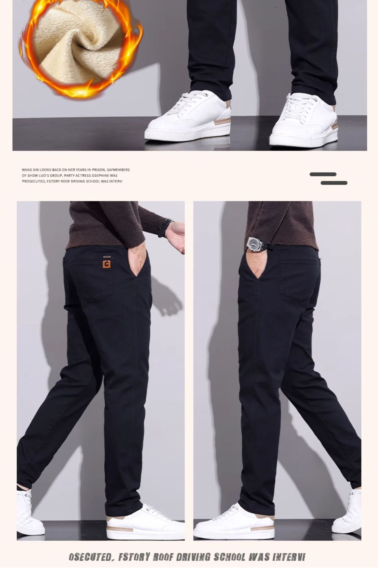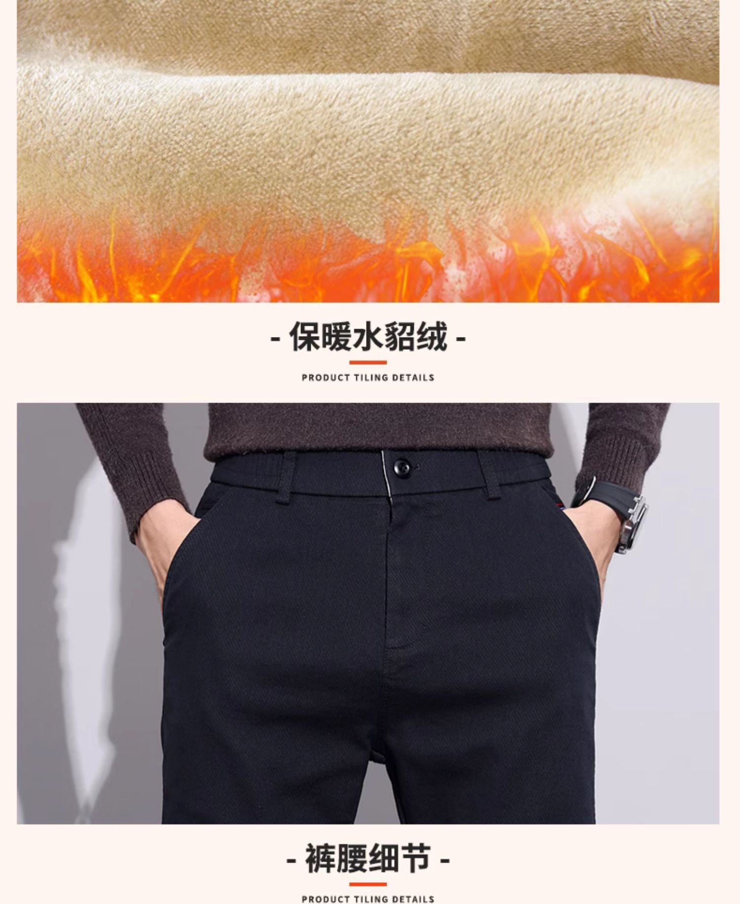 겨울 고급 비즈니스 남성 서양 바지 가을과 겨울 기모 두꺼운 슬림 핏 스트레이트 캐주얼 바지 겨울 벨벳 바지스토어 가기