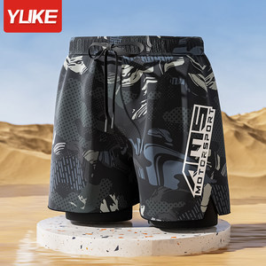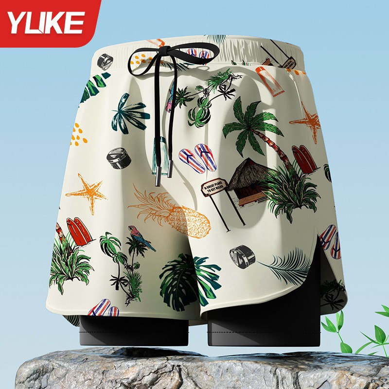 성인 더블 레이어 수영 트렁크 남자 복서 5 점 수영복 당황 방지 새로운 전문 해변 성인 수영 장비