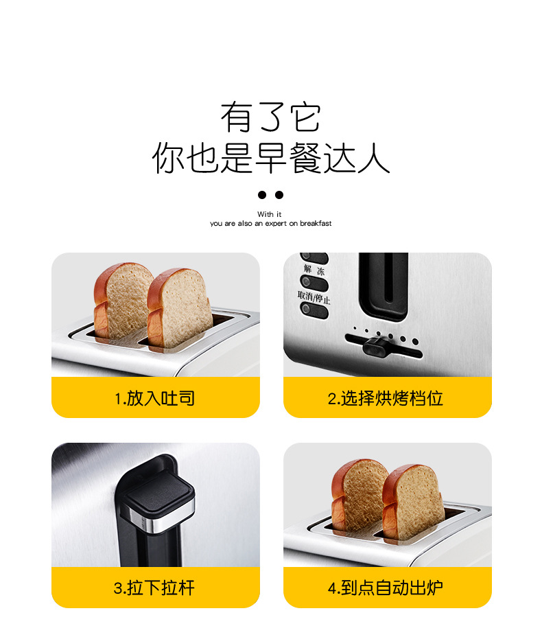 시딜라 토스터 304 스테인레스 스틸 아침 식사 침 드라이버 가정용 소형 자동 2 조각 빵 스마트 오븐스토어 가기