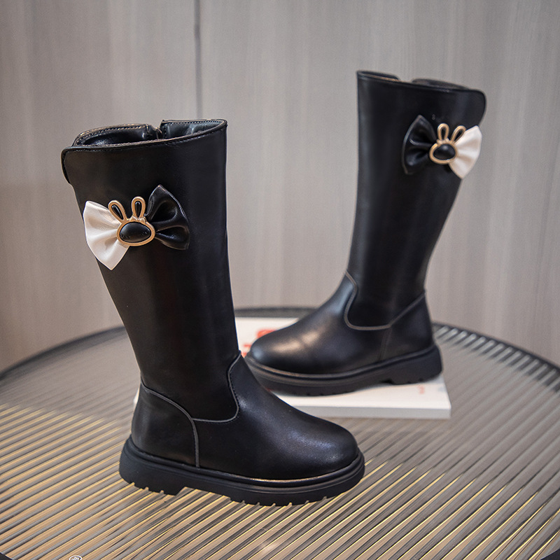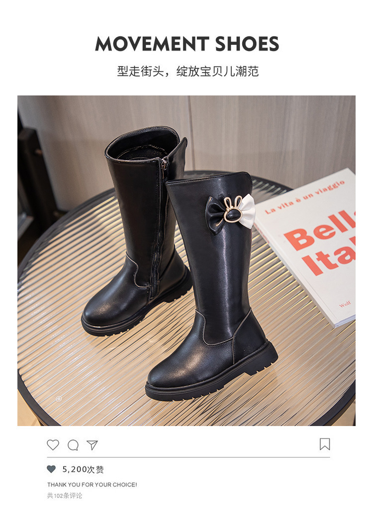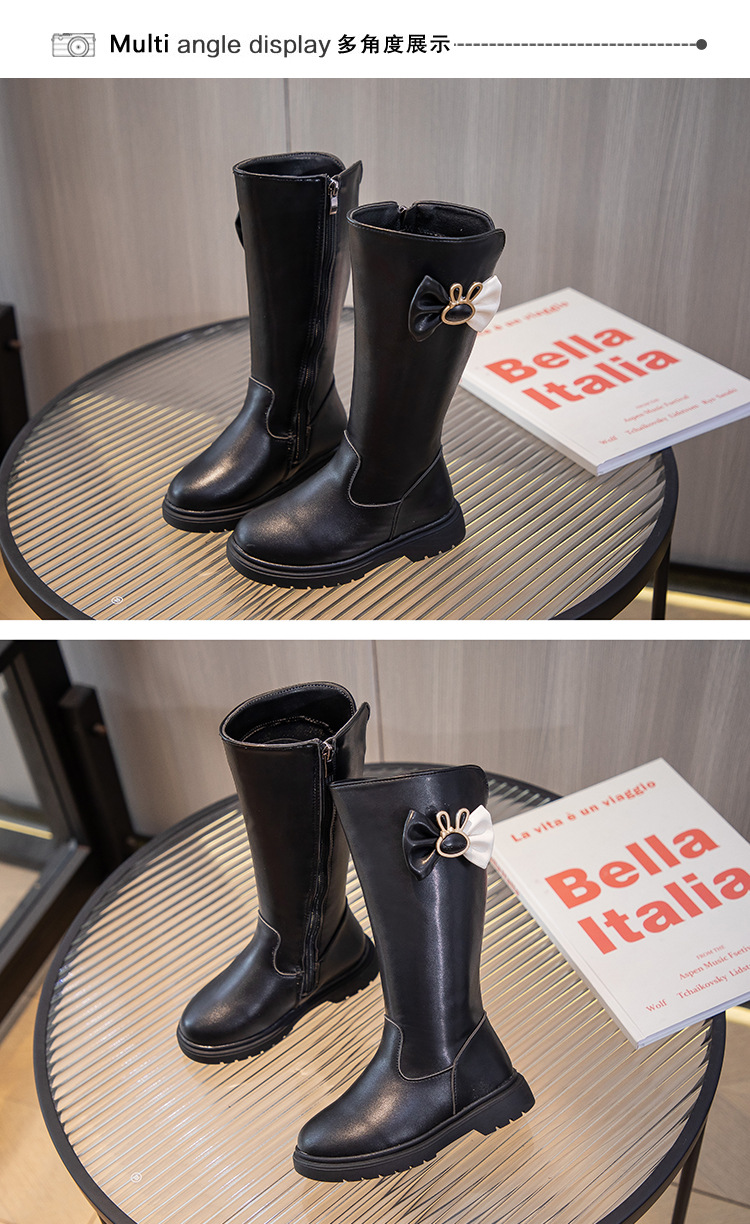 높은 부츠 소녀 마틴 2023 가을과 겨울 새로운 영국 스타일 싱글 부츠 소녀 기모 어린이 긴 가죽 부츠스토어 가기