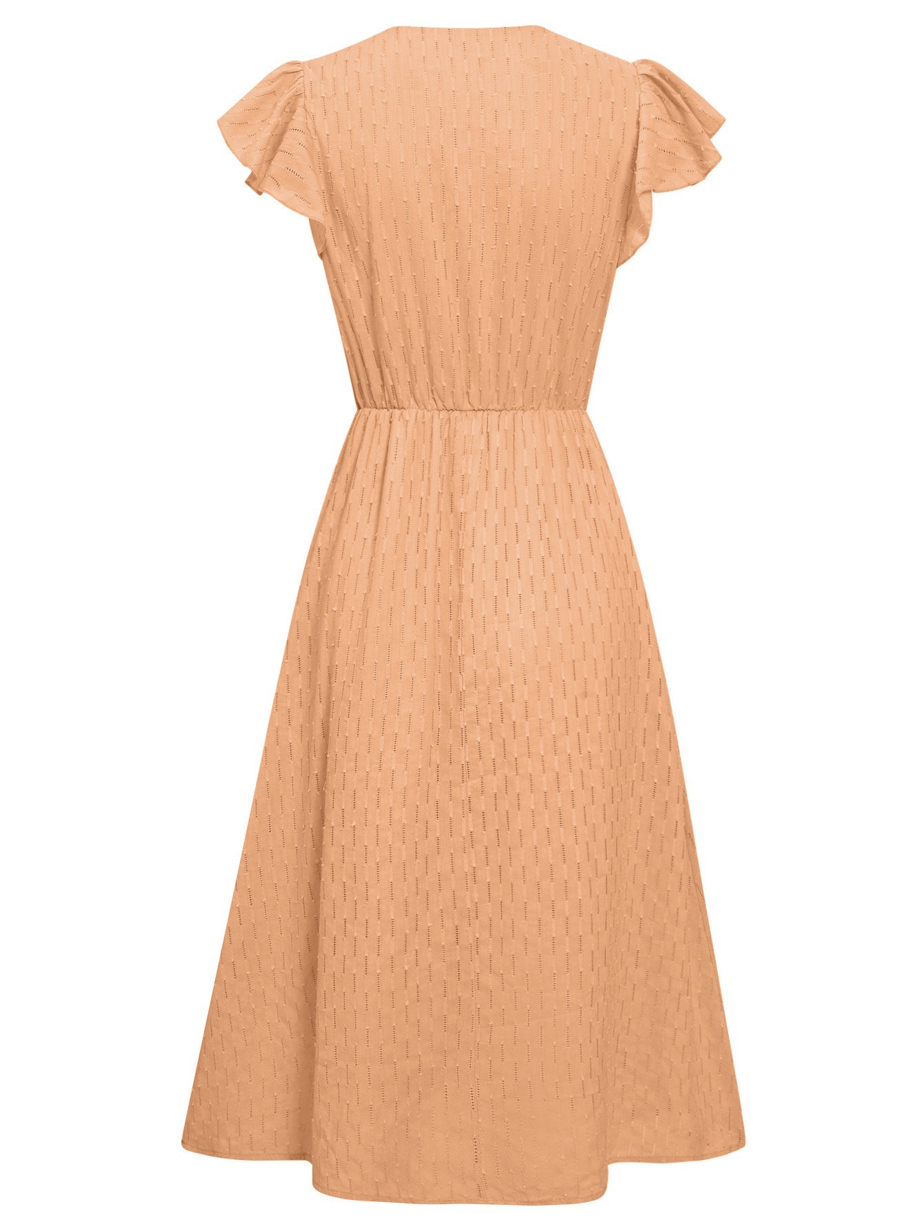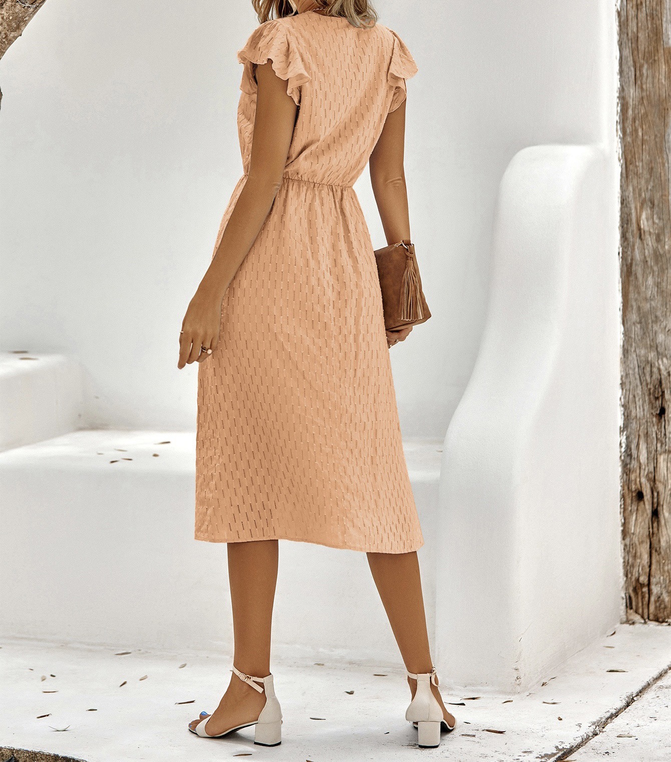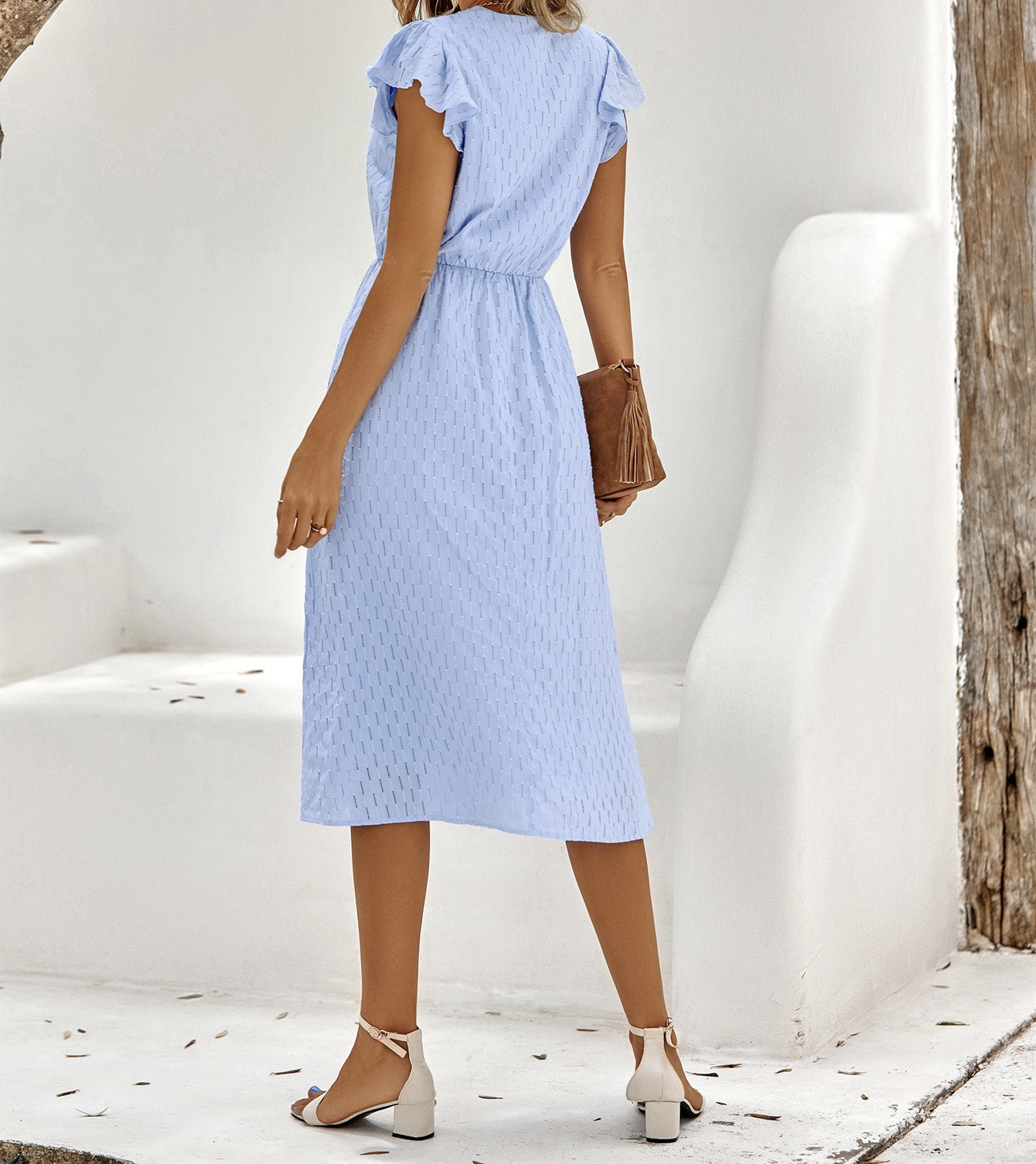 독립 역 wish2023 여름 새로운 캐주얼 여성 의류 유럽과 미국 단색 V-넥 허리 신선한 스타일 원피스 여성