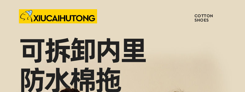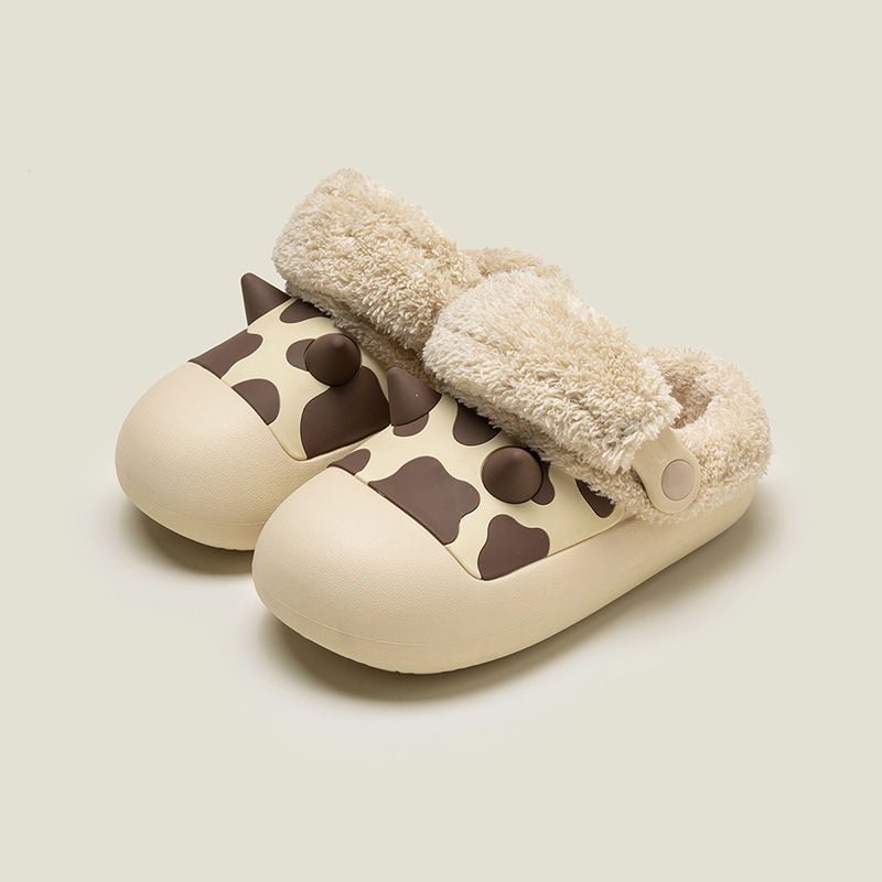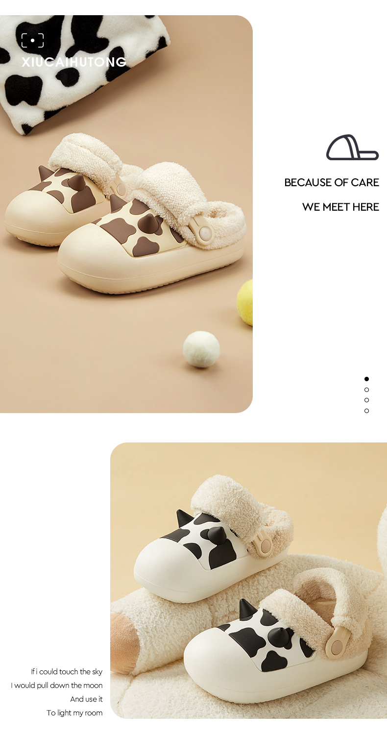 어린이용 겨울 방수 면 슬리퍼, 여아용 탈부착 가능 면화 신발, 남아용 면 슬리퍼 겸용 만화 소 슬리퍼스토어 가기