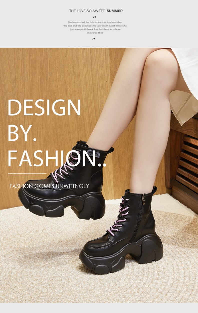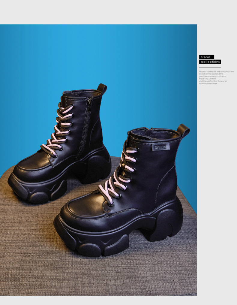 두꺼운 밑창 마틴 부츠 여성용 가을과 겨울 새로운 2023 가죽 부츠 작은 내부 높이 부츠 여성용 영국 스타일 발목 부츠스토어 가기