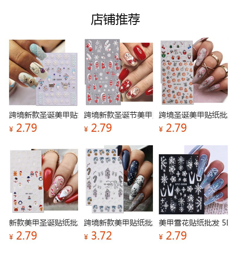 크로스 보더 새로운 네일 아트 스티커 도매 크리스마스 겨울 눈송이 새해 시계 네일 스티커 데칼스토어 가기
